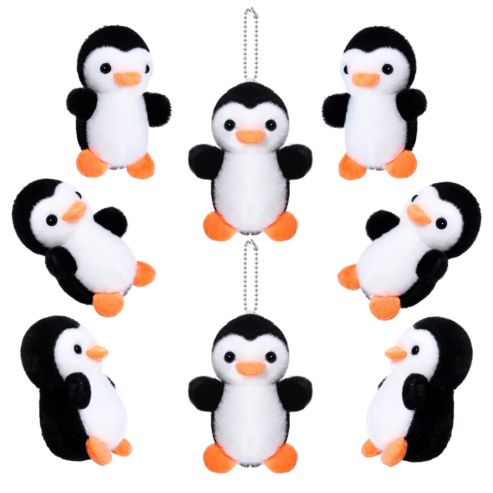 Skylety 8 Pcs Penguin Plush Keychain 4 Inch Stuffed Animal Bulk Small Hanging Stuffed Penguin Doll Mini Soft Companions Gift Present Party Favors For Kid Birthday Decoration(Black)