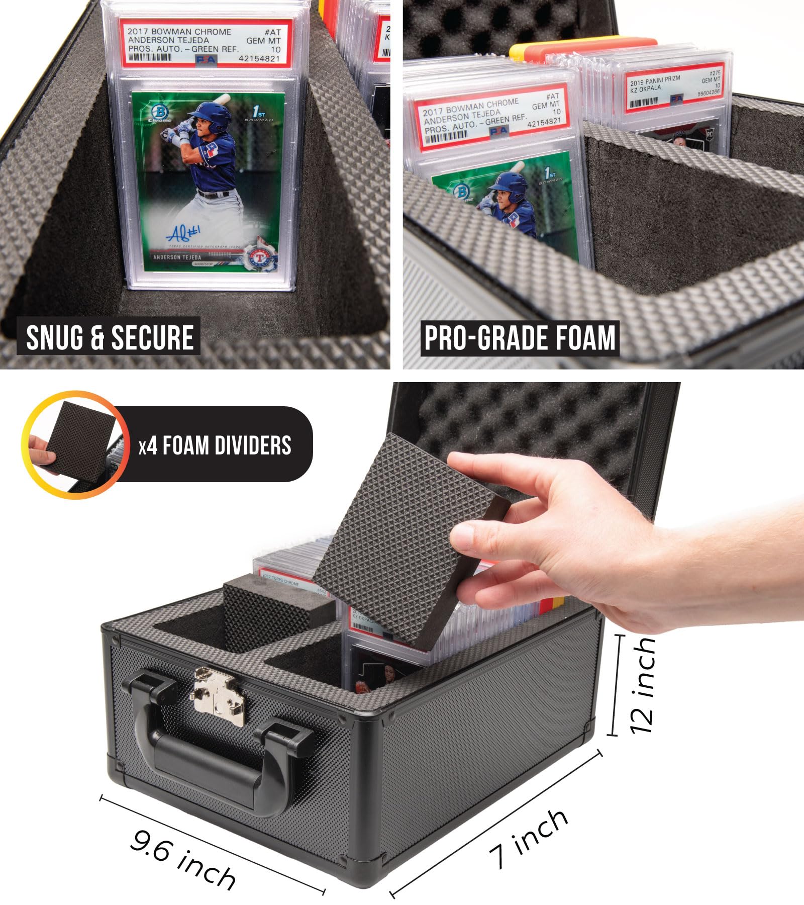 PSA Graded Card Storage Box - Our graded sports card storage box is specially designed to house PSA graded cards. The card slab case offers a snug fit to keep your cards in pristine condition. Slab Case for Graded Cards - Built to last our graded slab case is sturdy and dependable. These sports card storage boxes protect your collection from dust moisture and daily handling. Sports Card Case - Elevate your PSA graded cards with our enhanced PSA slab case. This PSA card case provides the utmost protection adding an extra layer of safety for your collection. Card Cases for Sports Cards - Versatile and durable our graded sports card storage is ideal for all sports card enthusiasts. This Zion case-style box offers enhanced protection and sleek portability. Graded Card Case - From PSA slabs to baseball cards this PSA slab box is a must-have. Our baseball card case gives your cards a dedicated safe space shielding them from environmental damage.