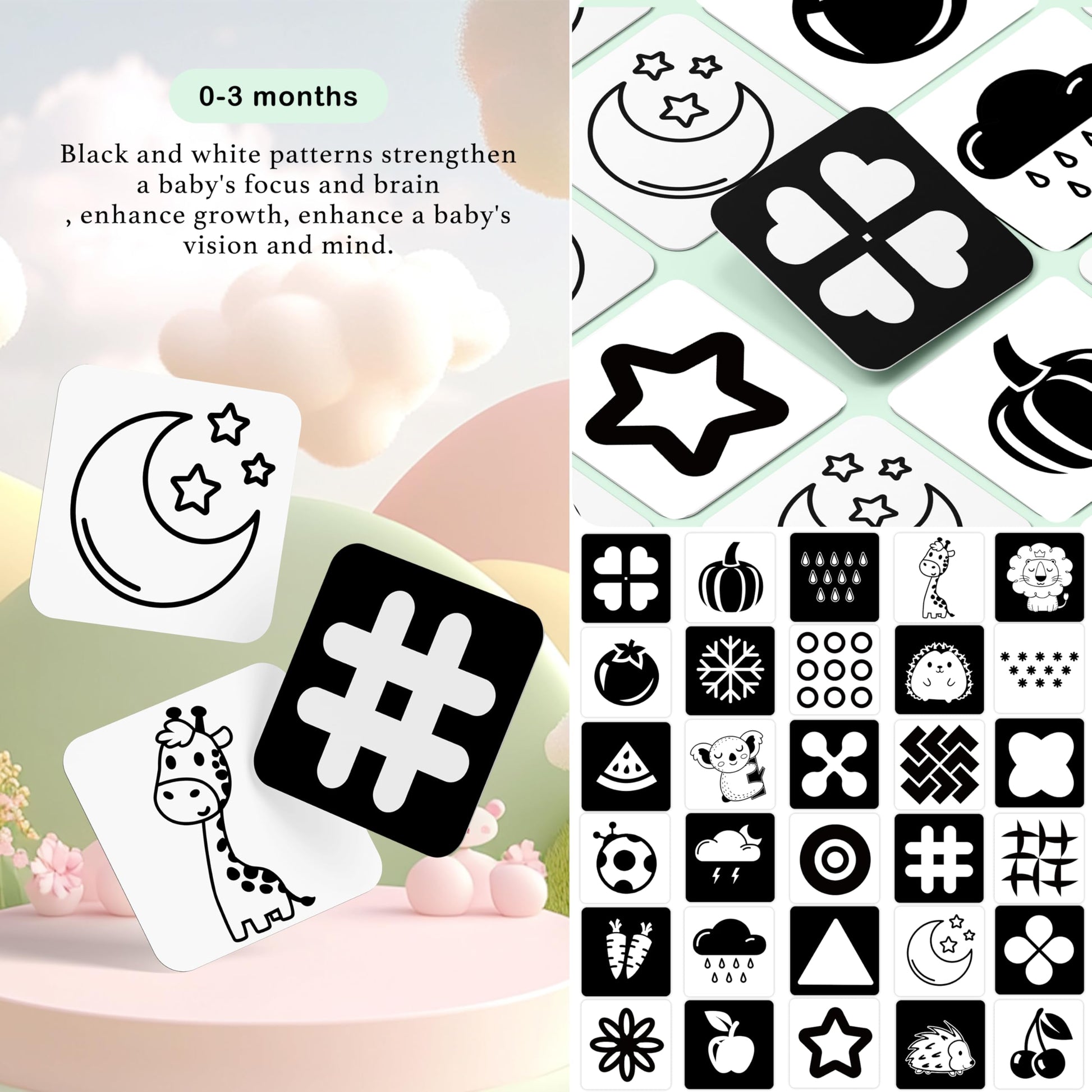 - Q: Can these contrast cards help with my baby's recognition skills? A: Absolutely! The set includes various shapes and geometric figures that cater to different stages of visual development, encouraging your baby to recognize patterns, solve problems, and build vocabulary as they grow.