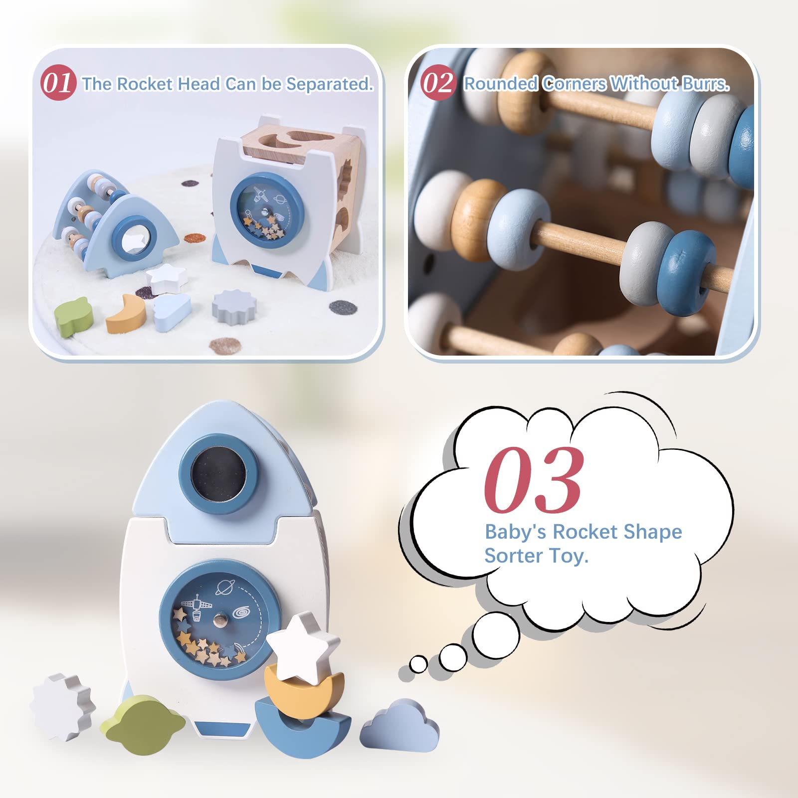 Smartwo Wooden Space Toy For Baby 1 Year Old, Montessori Toy For Babies 12-18 Months, Toddler Rocket Toy Age 1-3, Sensory Activi