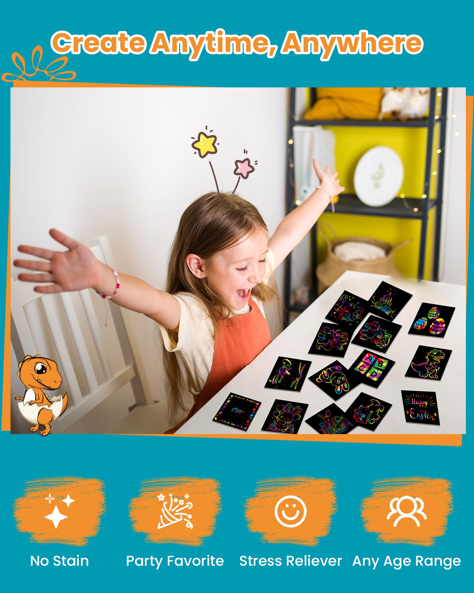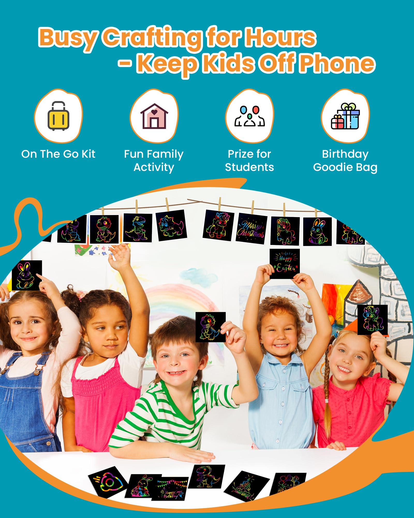 Unleash creativity with Rainbow Scratch Mini Art Notes! These 125 magic scratch paper note cards offer a fun, interactive art experience for kids. Simply scratch away the rainbow surface to reveal vibrant colors underneath, creating unique designs and patterns. Perfect for arts, crafts, and DIY projects, these notes make excellent party favors, stocking stuffers, or birthday gifts for girls and boys. Compact and portable, this gift box is ideal for keeping little hands entertained anytime, anywhere. Encourage imagination and artistic expression with Rainbow Scratch Mini Art Notes!