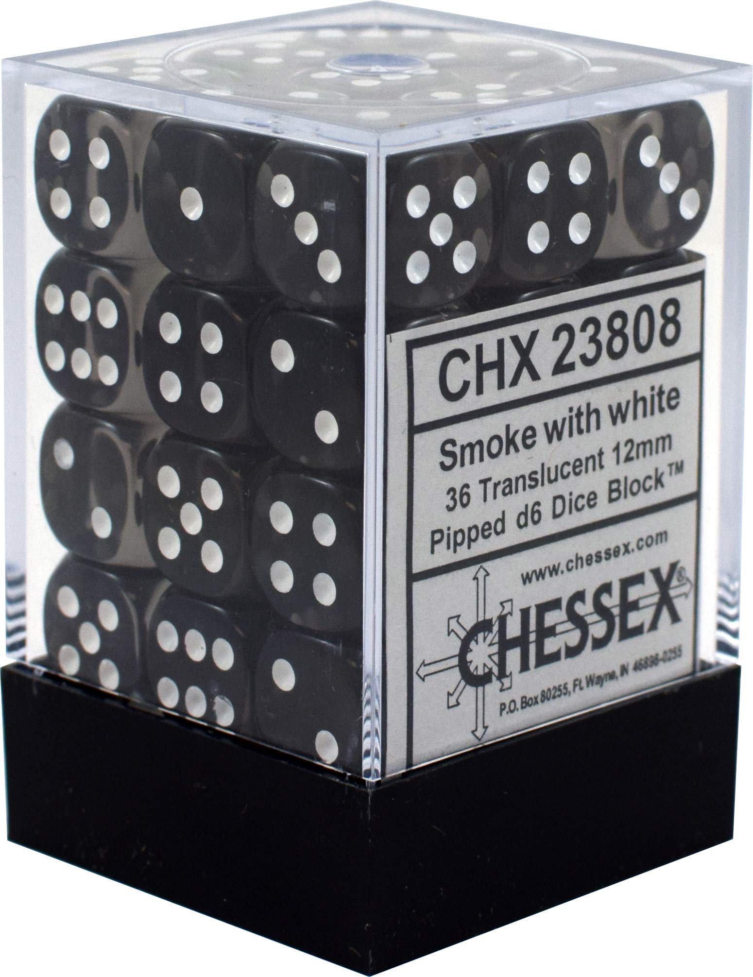 Smoke with White Spots Translucent 12mm 6 Sided Dice 36