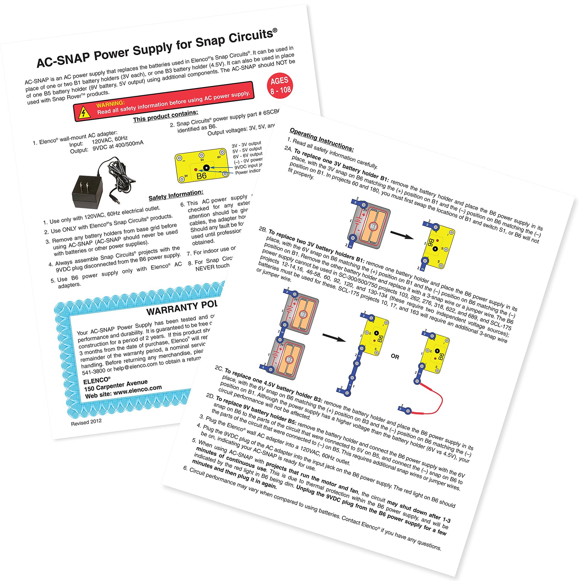 - Q: Does the Snap Circuits Battery Eliminator come with a warranty? A: Yes, it typically comes with a manufacturer's warranty. Please check the packaging or the manufacturer's website for specific warranty details.