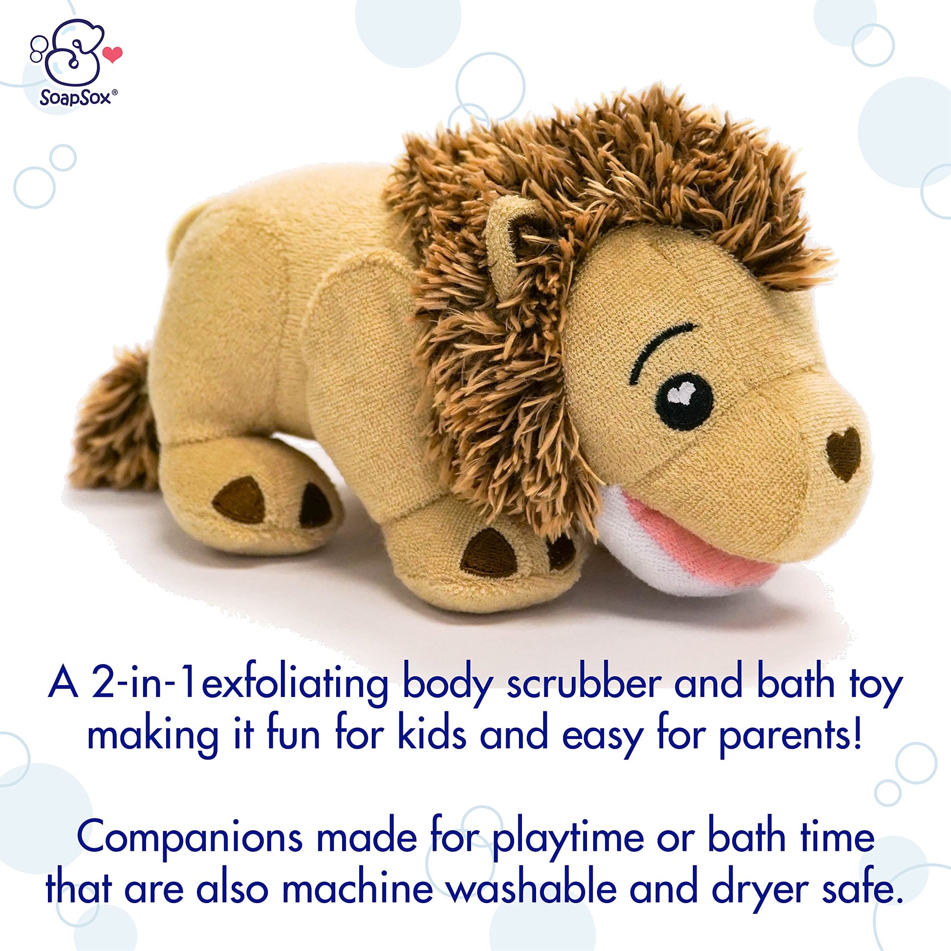 - Q: What sizes and colors are available for SoapSox? A: SoapSox comes in a normal item size and is available in various fun animal designs, making it an exciting addition to your child's bath time routine.