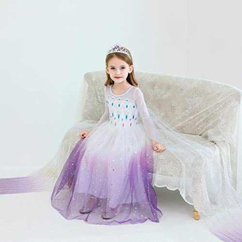 SOTOTOO Elsa Costume Long Sleeves Princess Dress Queen White Costume Cosplay Dress Up with Accessories Halloween (Violet,9-10Yea