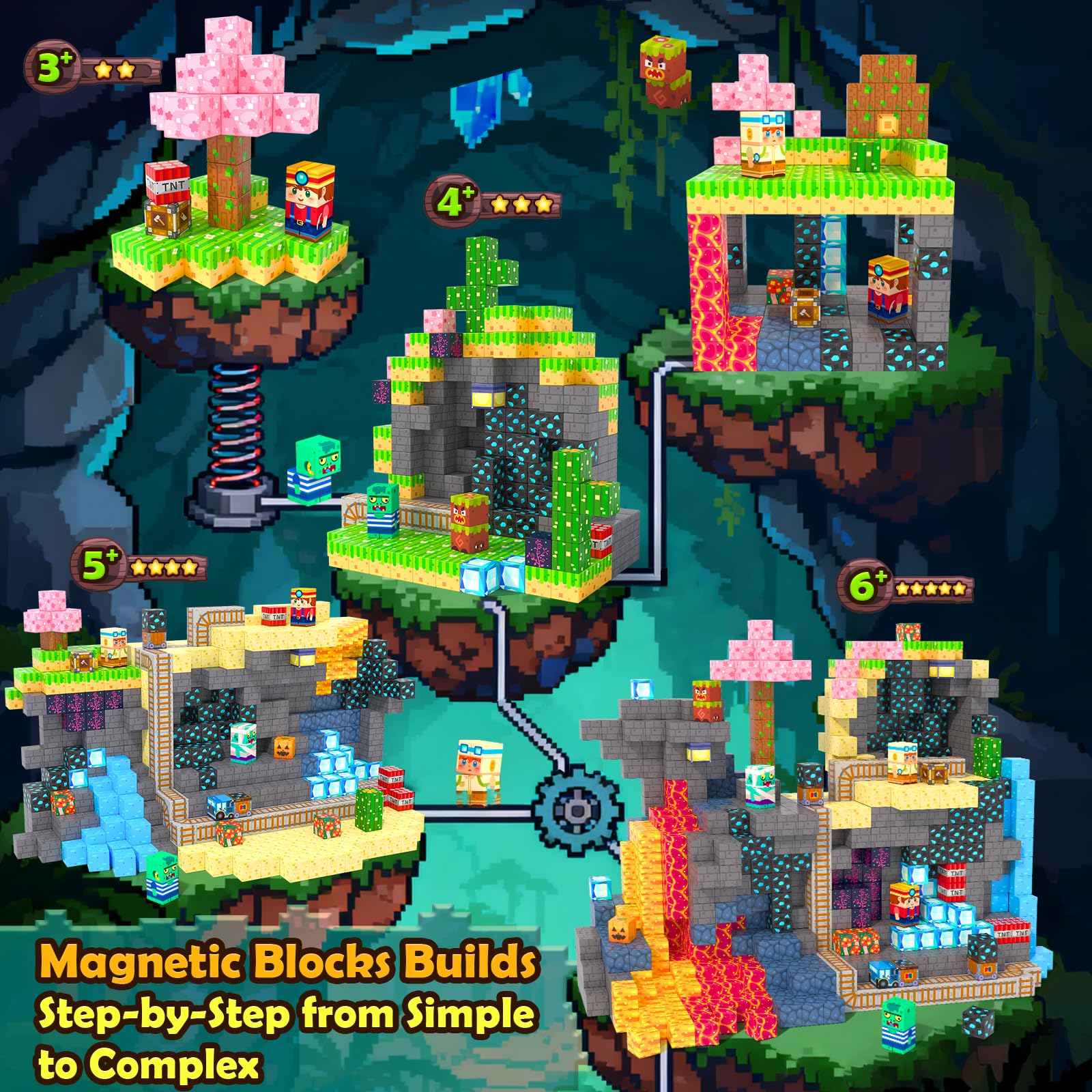 - Q: What types of themes can be built with the Soyee Magnetic Blocks? A: Children can build forest and mine-themed scenes, including elements like gems, trees, and cabins. This variety encourages imaginative play.