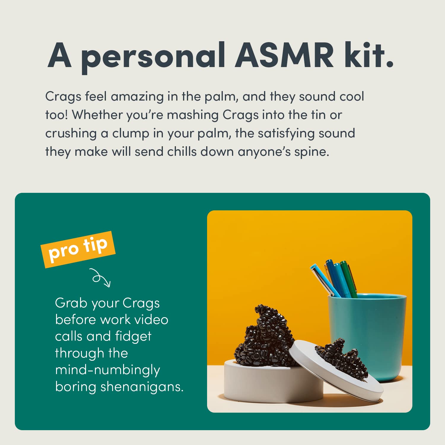 Introducing Speks Crags Ferrite Putty your ultimate stress-relieving companion! Encased in a chic gradient tin Crags is not just any fidget putty; it's a tactile masterpiece designed for the ultimate sensory experience. Crags Ferrite Putty boasts over 500 ferrite stones in a sleek gradient tin. It's the epitome of satisfaction offering a mashable moldable and stackable delight for your senses. Looking for that elusive ultimate stress relief? Crags delivers! Feel the tingle up your spine as you crush the putty in your palm then watch the smile unfold as you drop them back into the tin. Need to focus during work calls? Crags will keep your fingers occupied transforming dull moments into creative inspiration. But Crags isnt just about the ASMR experience. It's an office d?cor marvel. The contrast between the colorful gradient tins and the lustrous black ferrite beads is mesmerizing. Want a clean look? Keep the stones contained. Feeling bold? Mold your Crags into captivating shapes and watch envy spread among your colleagues. Made to last Crags Ferrite Putty features heavy-duty ferrite stones that withstand endless mushing and stacking ensuring its beauty and functionality endure. Its not just a stress relief tool; its an heirloom. Perfect for ADHD office focus or delightful gifting. Dont miss out on the joy - grab your Crags Ferrite Putty today and transform stress into blissful satisfaction!