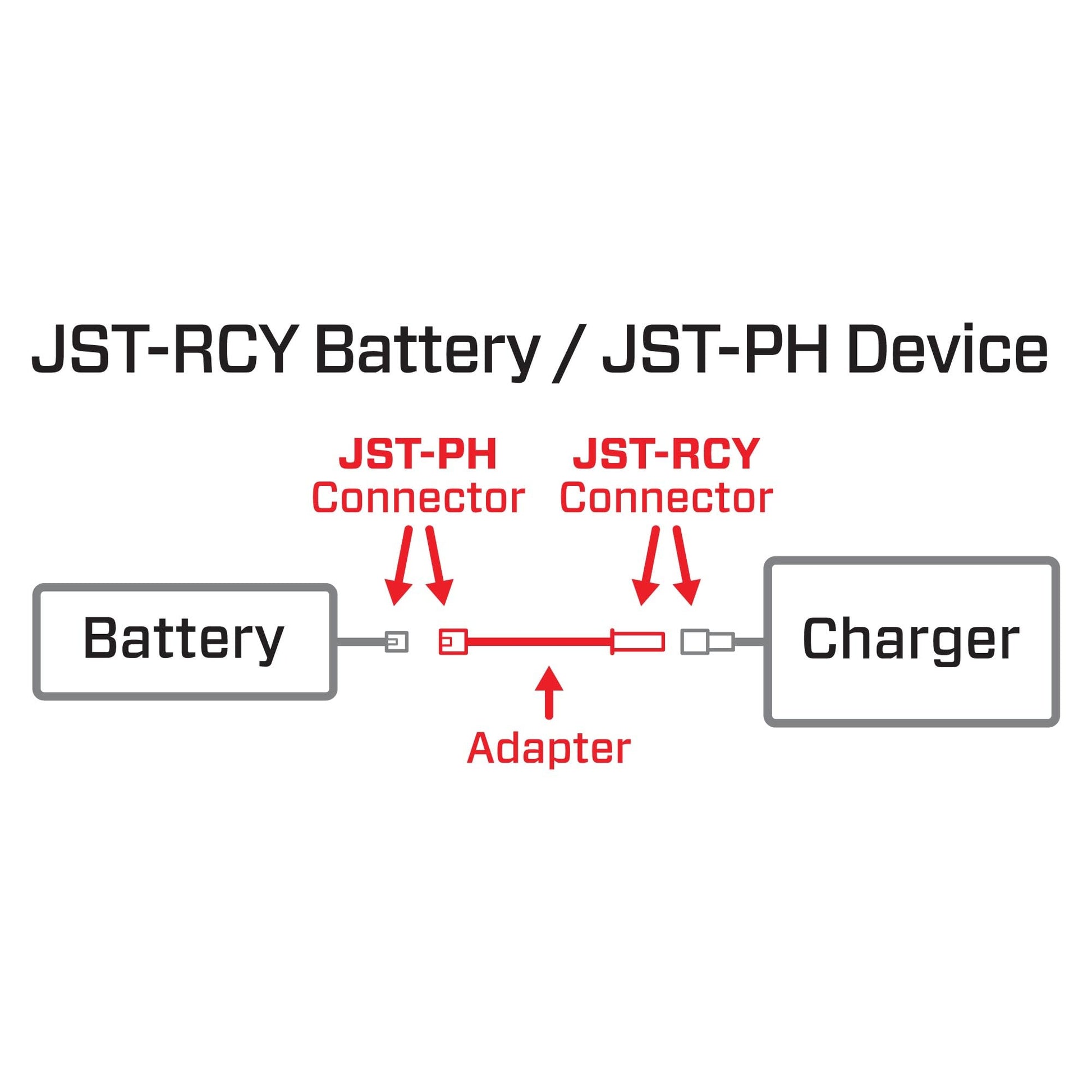 - Q: What is the Spektrum Adapter: JST-RCY Battery/JST-PH Device used for? A: The Spektrum Adapter allows you to connect PH/UMX connector 2S 7.4v LiPo batteries to the common 'Red JST' JST-RCY Battery Connector, making it easier to use various battery types in your remote-controlled vehicles.