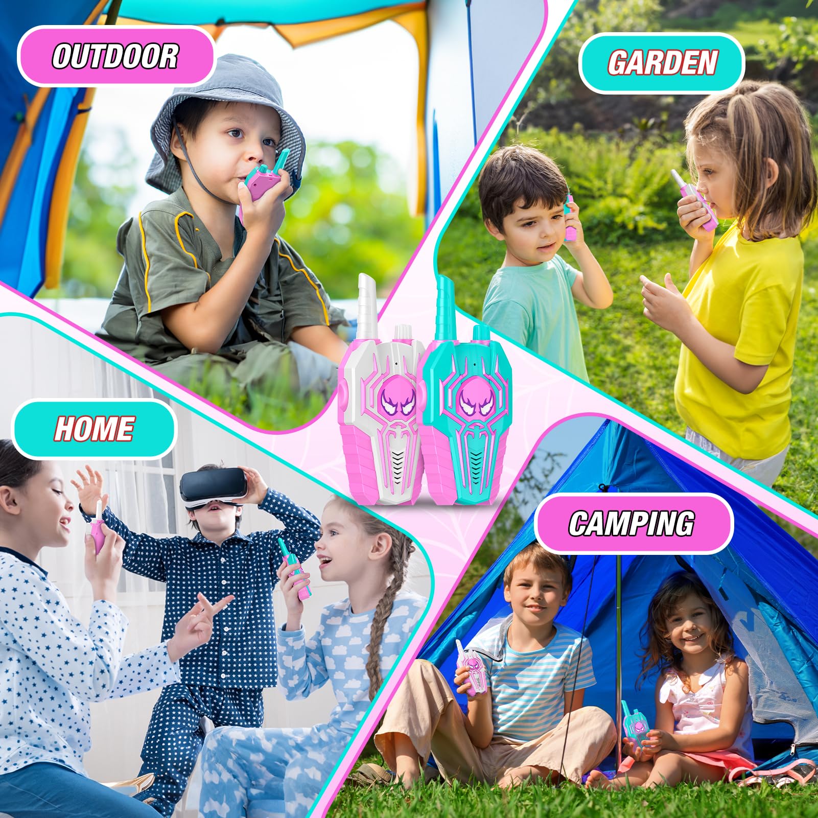 Spider Walkie Talkies For Girls Kids: Birthday Toys Gifts For 3 4 5 6 7 8 9 Year Old Girls Toys Ages 6-8 Kids Walkie Talkies 2 P