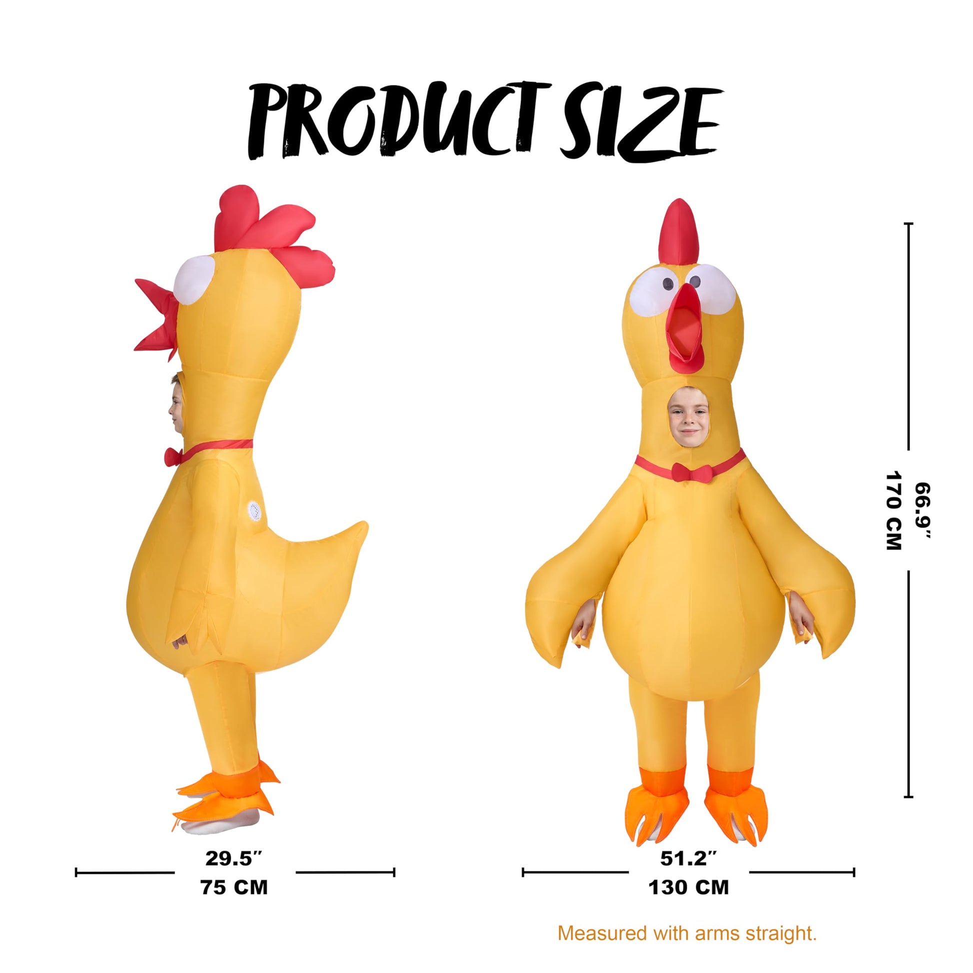 Perfect Size: The Inflatable Chicken Costume Is Specially Designed For Kids Size, The Costume Fits Up To 4'7' In Height, Ensuring A Perfect Fit For The Most Kids.