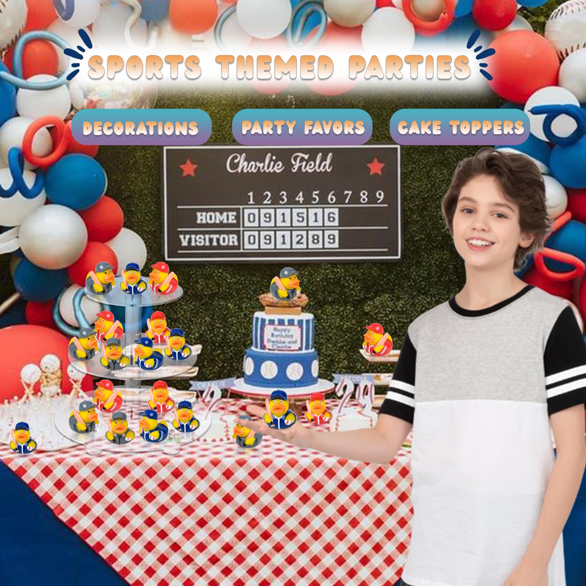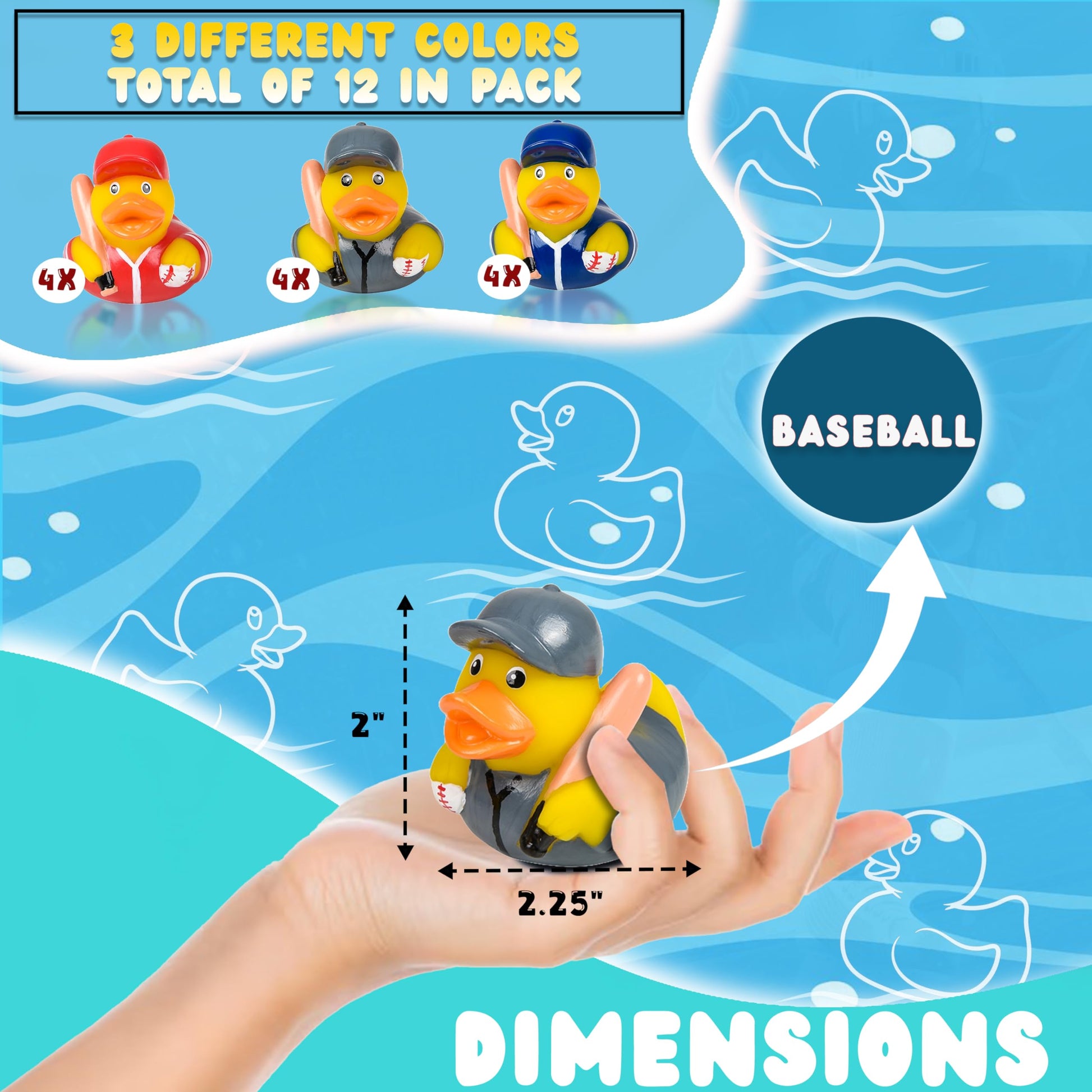 SCORE BIG WITH THESE SPORTS-THEMED RUBBER DUCKIES! Looking for some cool toys to add some fun and excitement to your child's bath time or your sports-themed party? Look no further than these tiny rubber ducks! This pack of 12 assorted rubber duckies includes hockey, baseball, football, and soccer designs, making it perfect for sports enthusiasts of all ages. Not just for bath time, these rubber duckies also make great toys for indoor and outdoor play. Your child can take them to the pool or beach for some sporty fun in the sun, or use them to invent their own games. And with their durable, non-toxic rubber construction, you can rest easy knowing that they'll hold up to even the most enthusiastic play. Add A Playful Touch To Parties For the ultimate sports-themed party, use these yellow rubber ducks as decorations and party favors. Create a game station where kids can toss the duckies into a basket, or have a ''ducky hunt'' where kids search for the hidden duckies. Your guests will have a quacking good time, and you'll score big as the host with the most fun party in the neighborhood! Here is why you will love these little rubber ducks: Fun and playful toys for kids to enjoy. Introduces children to different sports and equipment. Made from safe and durable material. They are super easy to clean. Makes a unique and fun gift for sports enthusiasts. Perfect as party favors for sports-themed events. Get your kids active and engaged with these sports-themed rubber duckies - order now.