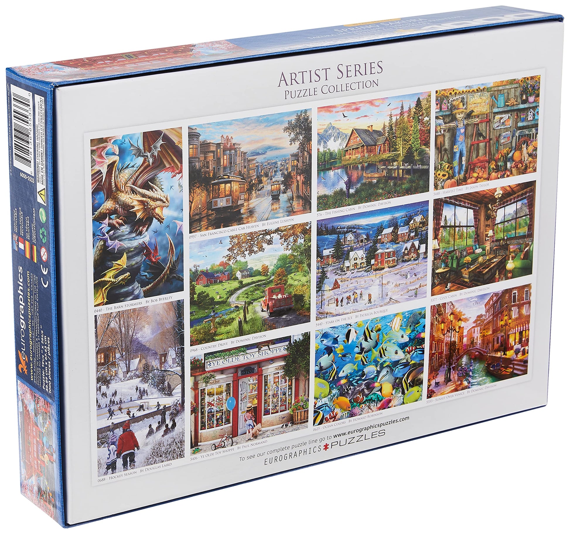 Painting by artist David McLean. Asia boasts hundreds and thousands temples. ... The two storey temple is asymmetrical in its shape, with a huge image of seated Buddha inside of the temple. Puzzle measures 19.25x26.6 inches completed. Made in USA with 100% recycled blue board paper.