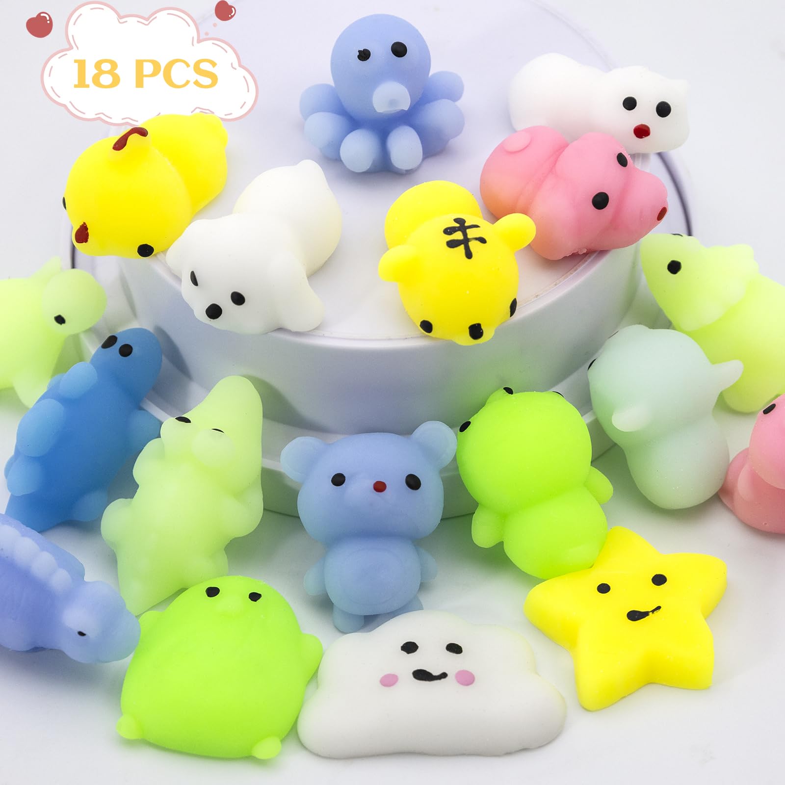 Squishes 18 Pcs Tiny Mochi Squishy Toys For Kids Age Over 3 Years Old,Kawaii Squishy Animals, Party Favors For Kids, Stress Reli