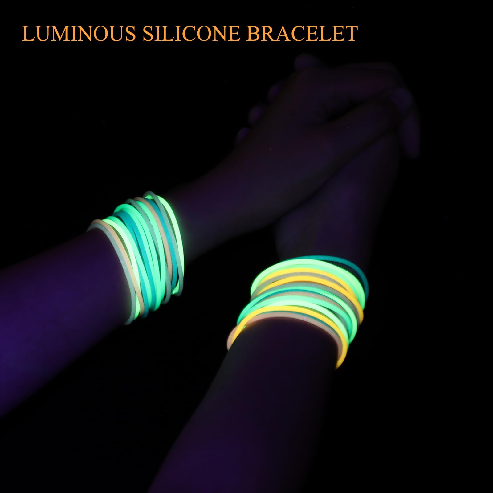 View compareSratte 300 Pcs Silicone Jelly Bracelets Bulk Rainbow Glow Neon Stretchable 80S Bracelets Multicolor Accessories Bands Hair Ties