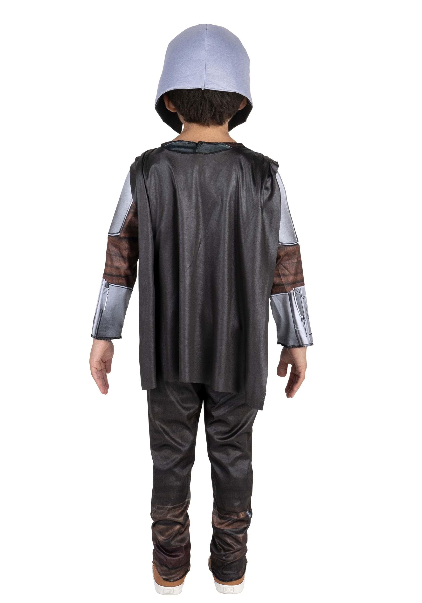 DescriptionBring em in warm or cold with the Star Wars Mandalorian Toddler Costume. Inspired by Din Djarins beskar protective covering from The Mandalorian this jumpsuit and cape will help your kid collect any bounty. Its cut from poly jersey and features a printed design to showcase Mandos hunting gear. Costume also includes a fabric Mandalorian full headpiece in accordance with the Mandalorian Code. Collect this Mandalorian Toddler Costume and teach your kid that this is the way. Officially licensed by Lucasfilm. Ages 2+ Includes: (1) Mandalorian Jumpsuit (1) Mandalorian Cape (1) Mandalorian Fabric Headpiece Ages: 2+ - Jumpsuit - Cape - Helmet
