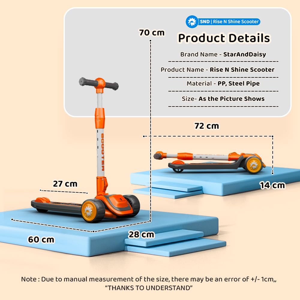 View compareStaranddaisy Scooter For Kids 3-12 Years Boys & Girls / 3 Wheel Skate Scooter With Pu Led Wheels, 4 Gear Height Adjustment, Fold