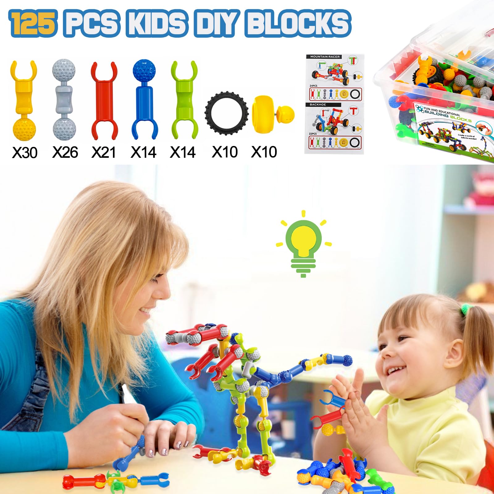 Stem Kids Building Toys For Ages 6-8 Boys Girls, 125 Pcs Building Blocks Games For Boys 3-5, Educational Learning Toys For 3 4 5 6 7 8 Year Old, With Large Storage Box, Ideal Christmas Birthday Gifts