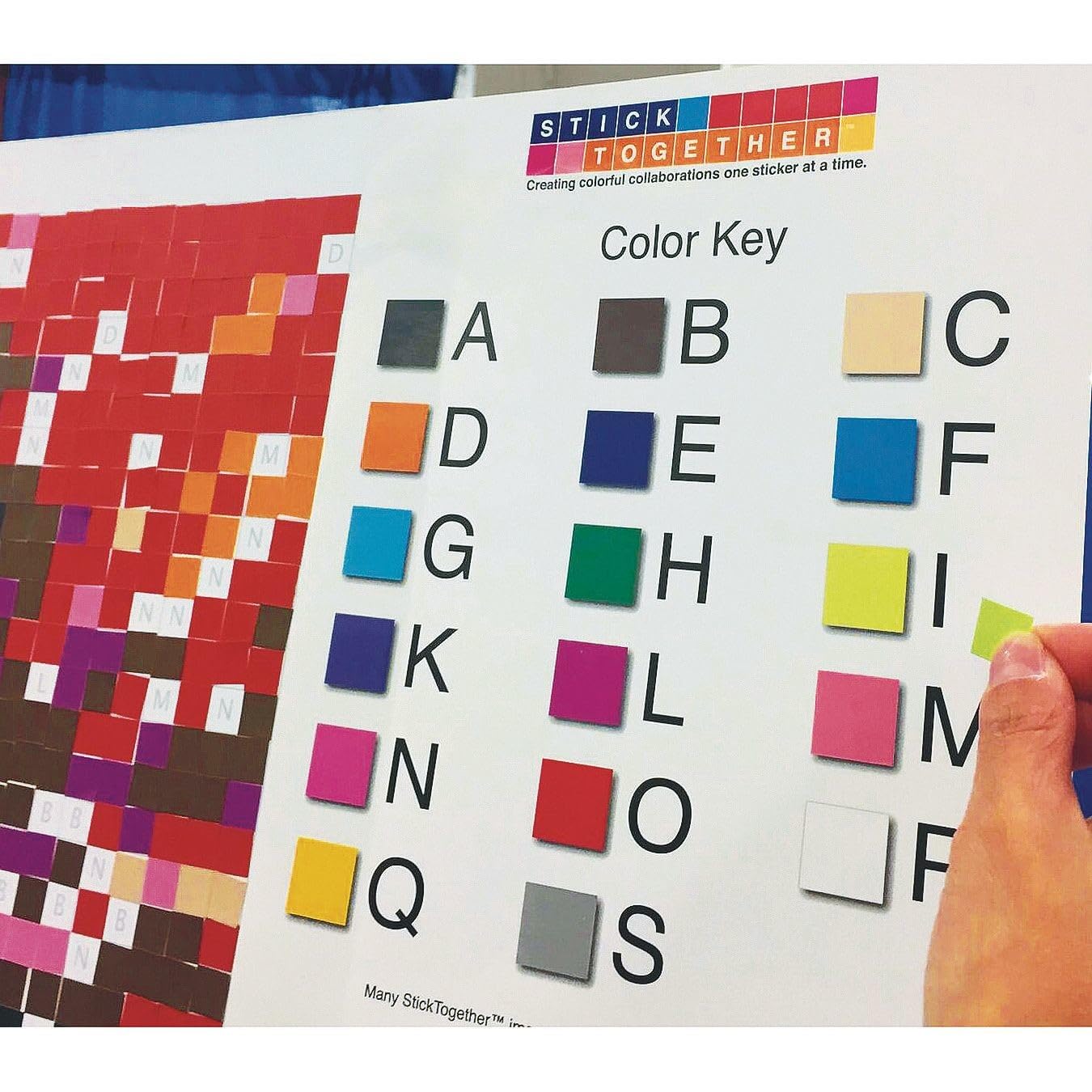 A perfect project for groups of all sizes and ages! Everyone works together to create a large format sticker mosaic of a sunflower. Kit contains a poster grid, all the stickers you need to create the image, a color key, and instructions. Project completion time varies depending on the size of your group and the activity time allotted. Finished size is 40 x 36 and is best viewed from a distance.