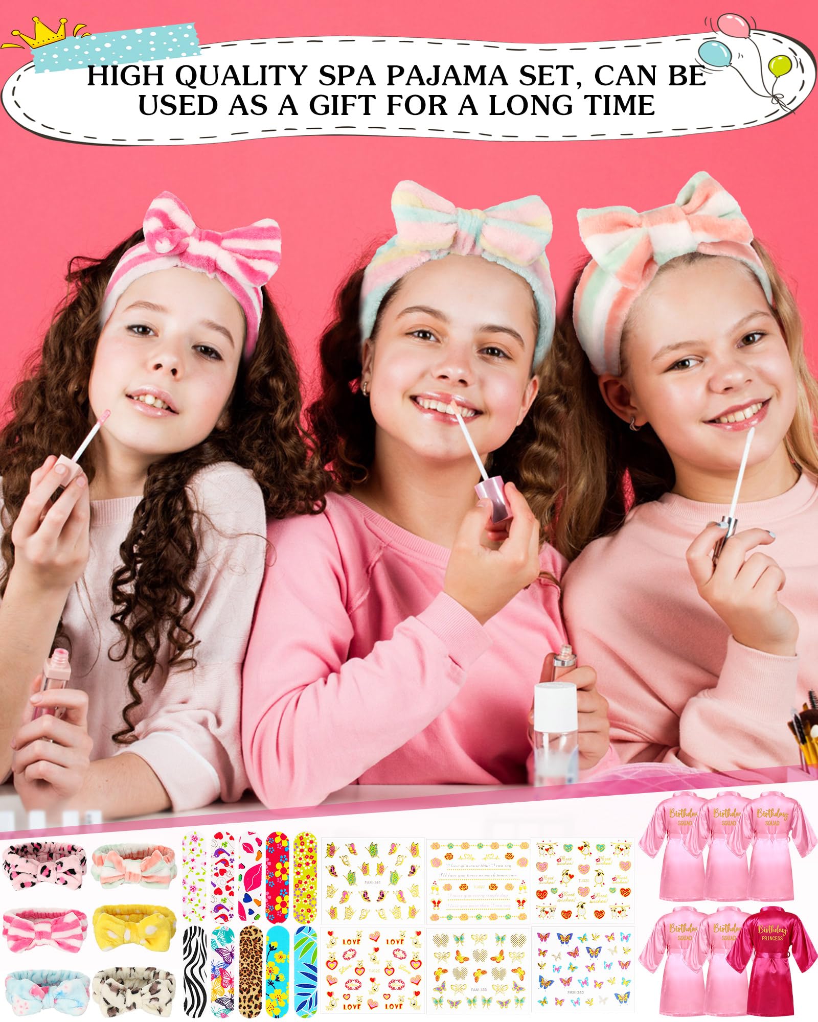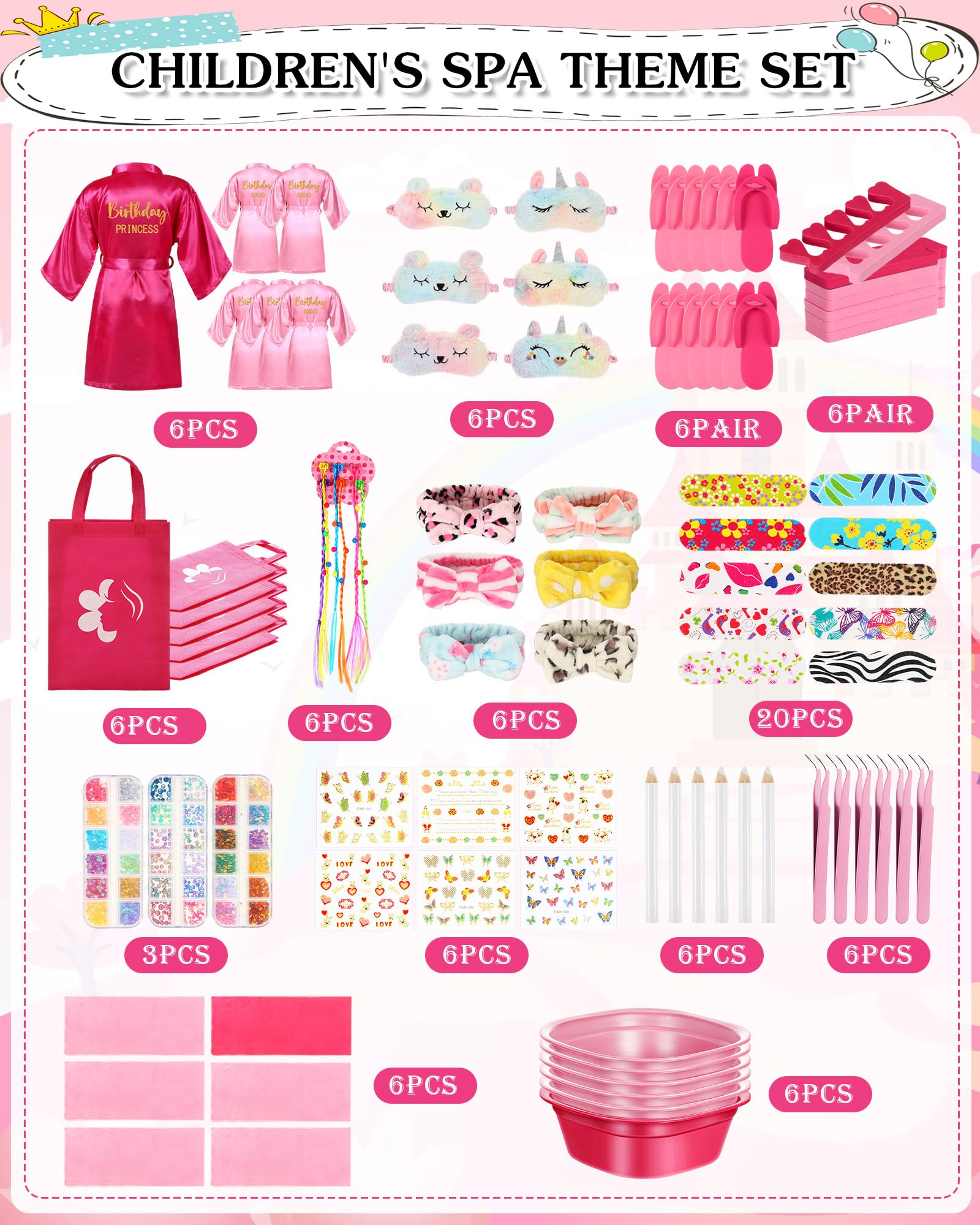 Suhine 6 Set Spa Party Supplies for Girls, Kids Satin Robes Nail Salon Kit Spa Kit Accessories for Birthday Party Favors (Elegan