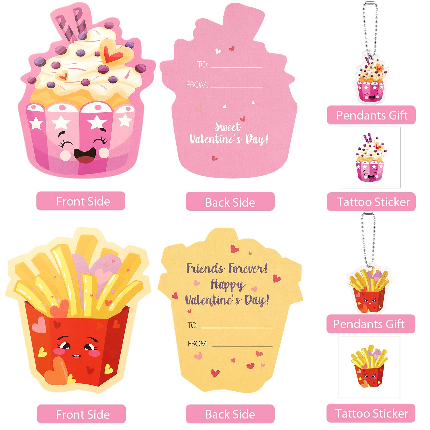 SUKKI Valentines Day Cards for Kids 30 Sets with Envelopes Pendant Gifts and Temporary Tattoos - Perfect Greeting Exchange Cards
