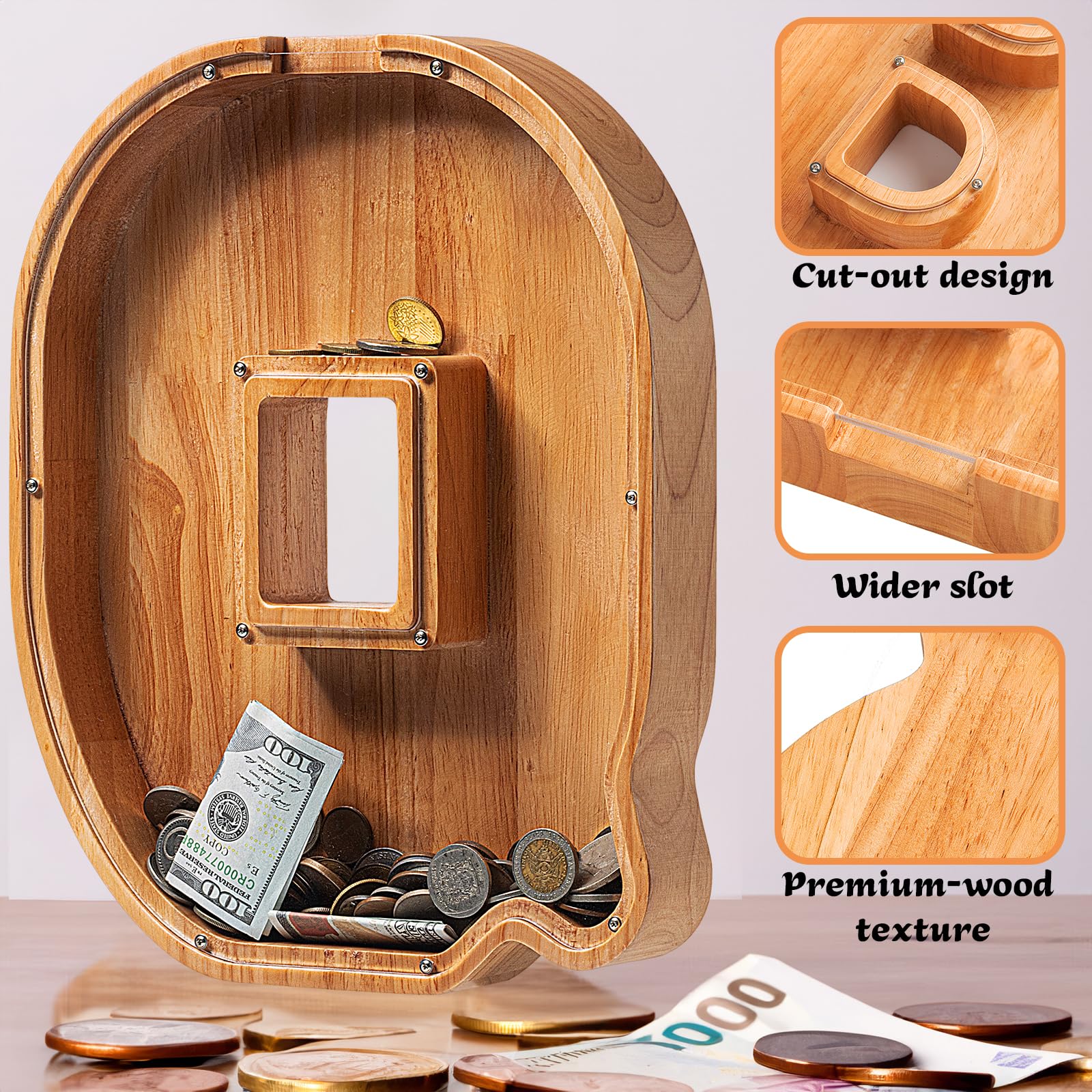 Piggy Bank for Kids Boys Girls Large Personalized Wooden Letter Piggy Bank with Cut-Out Design Alphabet Letter Coin Banks Money Savings Box Wooden Bank for Kids Creative Gift for Real-Money