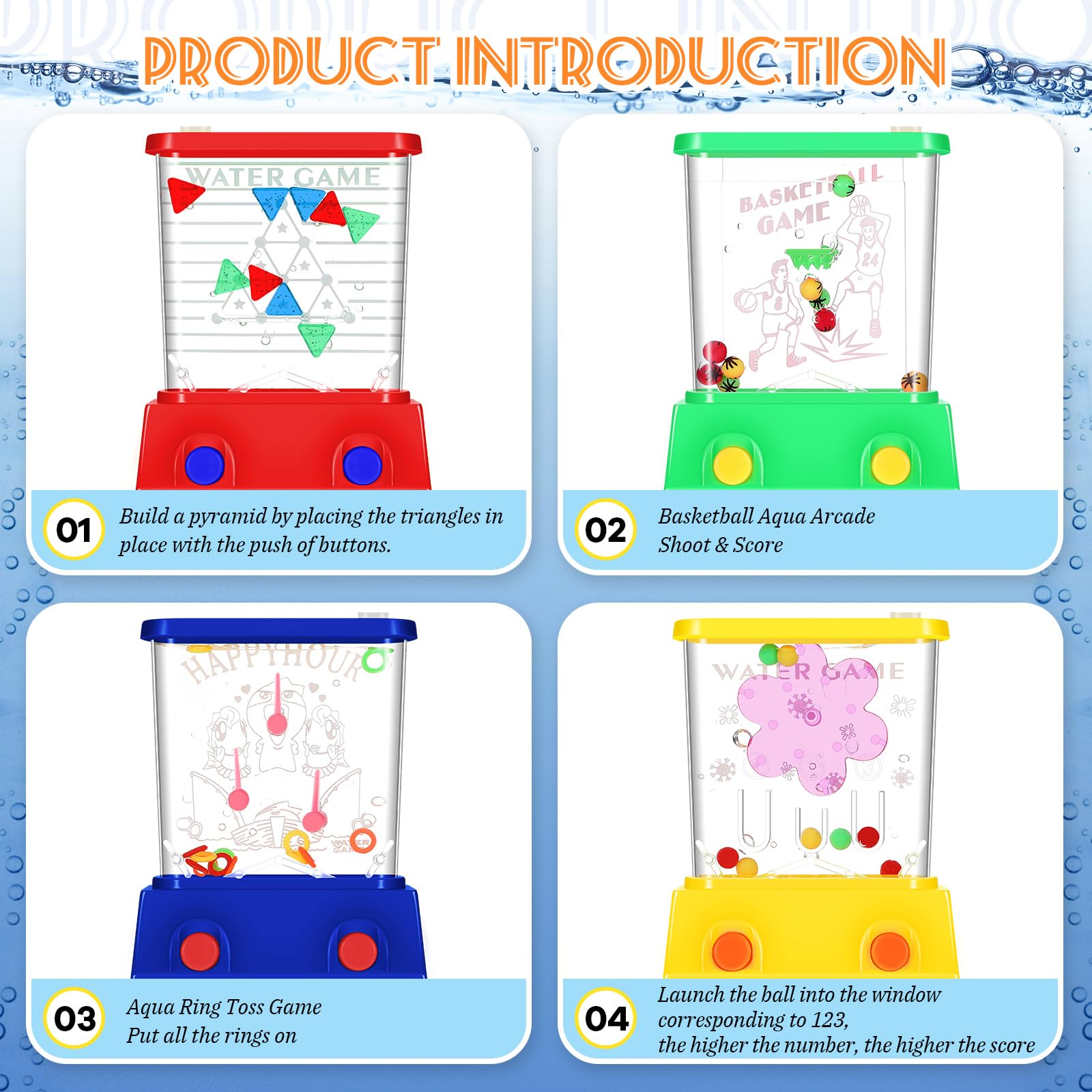 6 Pieces handheld water game mini arcade water ring game water tables for beach toys party favor fish rings fun game for teens mature-themeds basketball fun toys for men retro pastime (without water) Convenient sharing: The appropriate size is very suitable for carrying out to avoid some boring waiting time and it can be operated just by hands for entertainment. There are 6 pieces in 2 different styles can let you entertain and enjoy with friends. Relieve yourself: You can put down your phone when you are bored and wait and trying to play the brightly colored handheld water game to experience the happiness at your fingertips and relax your eyes your mood will also improve. Specifications: Size: approx. 2.6 x 3.3 inches/ 6.6 x 8.3 cm Color: as pictures shown Package includes: 6 x Handheld water games Note: Manual measurement please allow little size errors. More suitable for people over 12 years old.