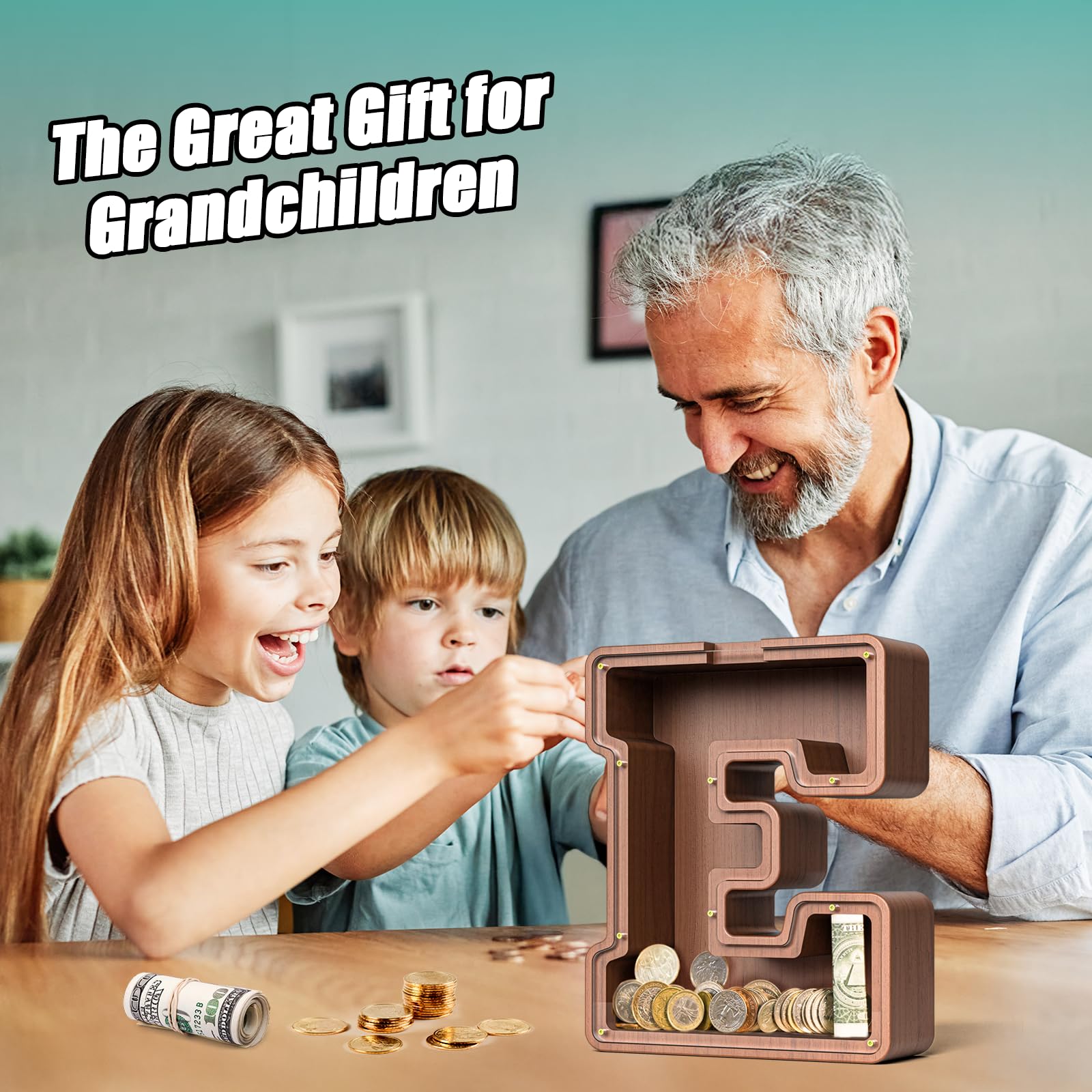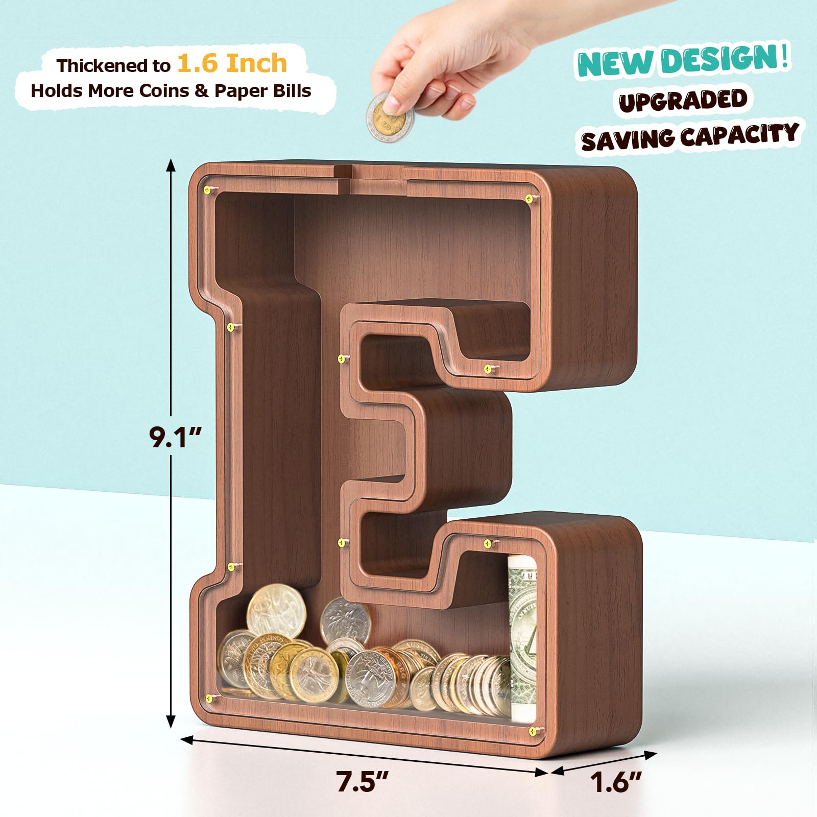 Summidate Wooden Letter Piggy Bank Extra Thick Large Capacity Piggy Bank for Kids Boys Girls Toddler Alphabet E Money Bank| Coin Box Birthday Christmas Festival
