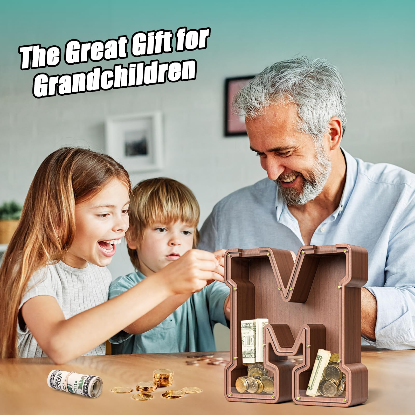 Summidate Wooden Letter Piggy Bank Extra Thick Large Capacity Piggy Bank for Kids Boys Girls Toddler Alphabet M Money Bank| Coin Box Birthday Christmas Festival