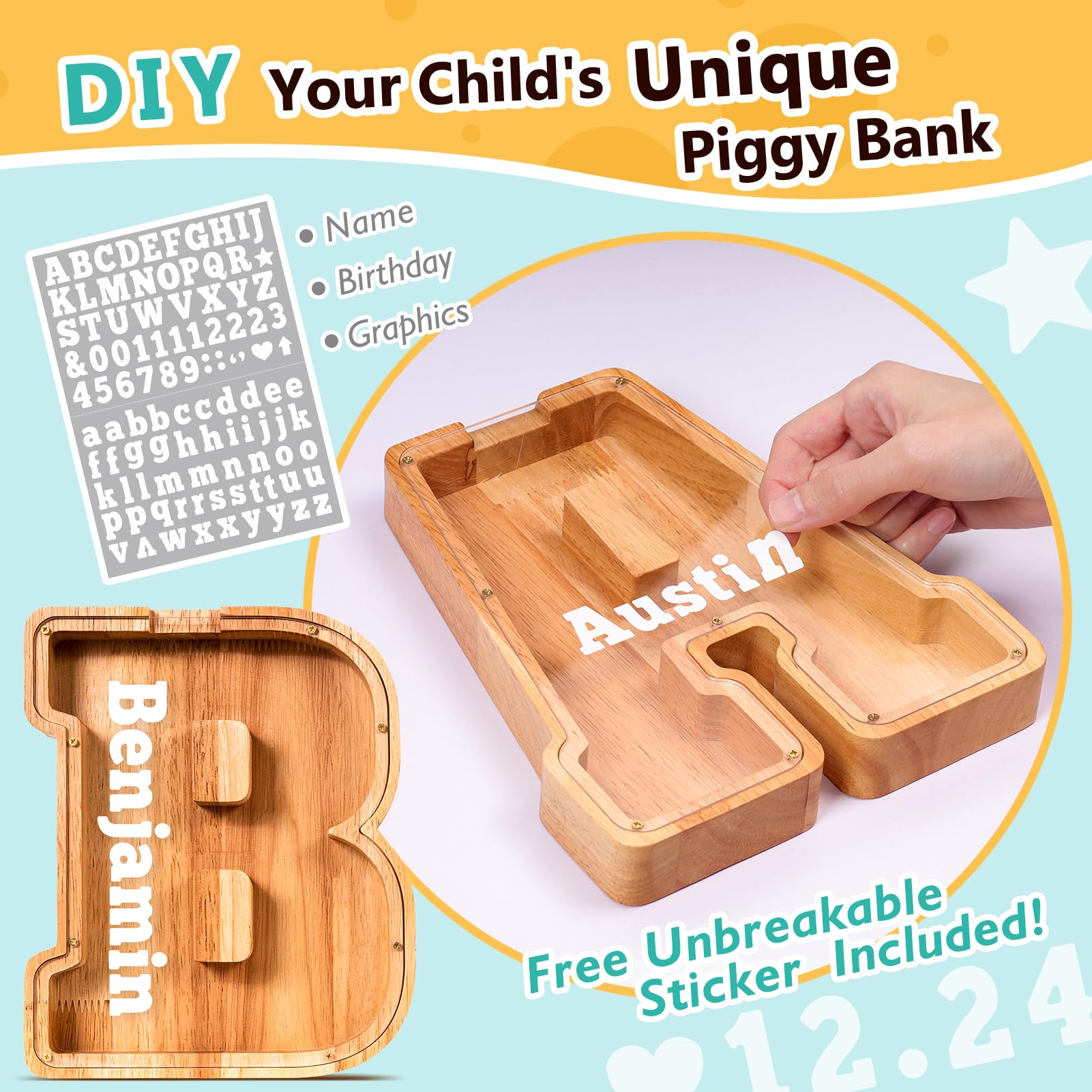 SummiDate Wooden Letter Piggy Bank| Piggy Bank for Boys Girls Toddler| Alphabet B Money Bank| Coin Bank Birthday Gift for Kids|Birthday Easter Gift for Kids (B)