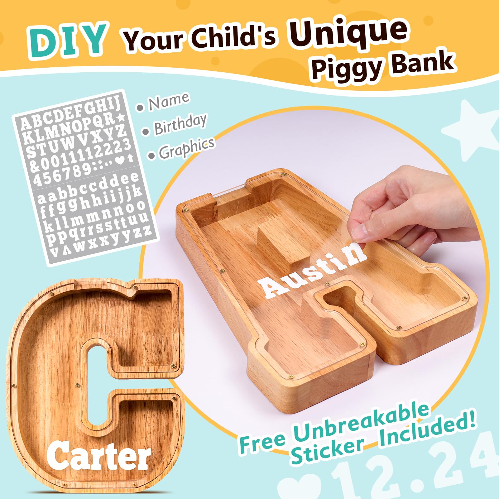 View compareSummiDate Wooden Letter Piggy Bank| Piggy Bank for Boys Girls Toddler| Alphabet C Money Bank| Coin Bank Birthday Gift for Kids|Birthday Gift for Kids (C)
