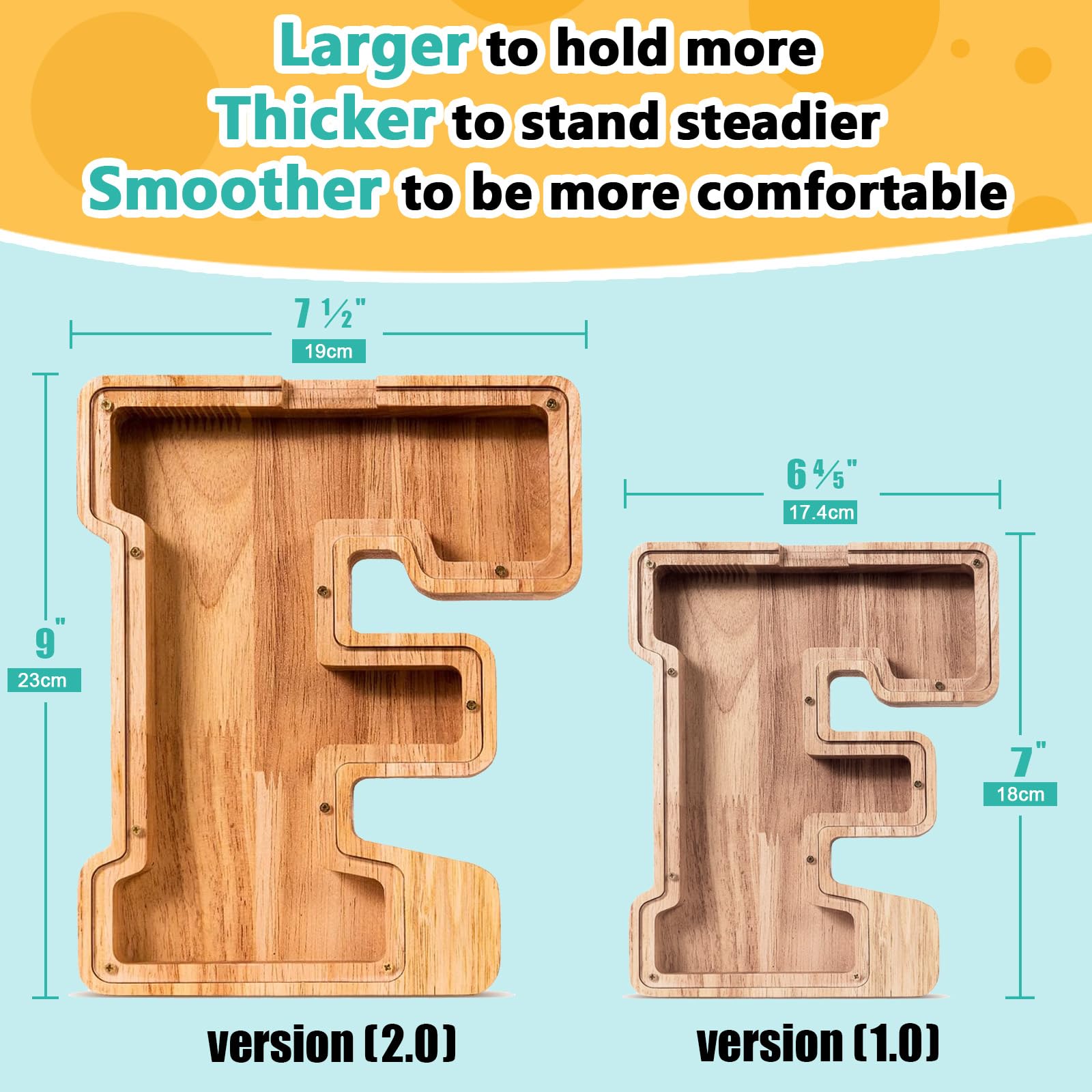 View compareSummiDate Wooden Letter Piggy Bank| Piggy Bank for Boys Girls Toddler| Alphabet F Money Bank| Coin Bank Birthday Gift for Kids|Birthday Gift for Kids (F)