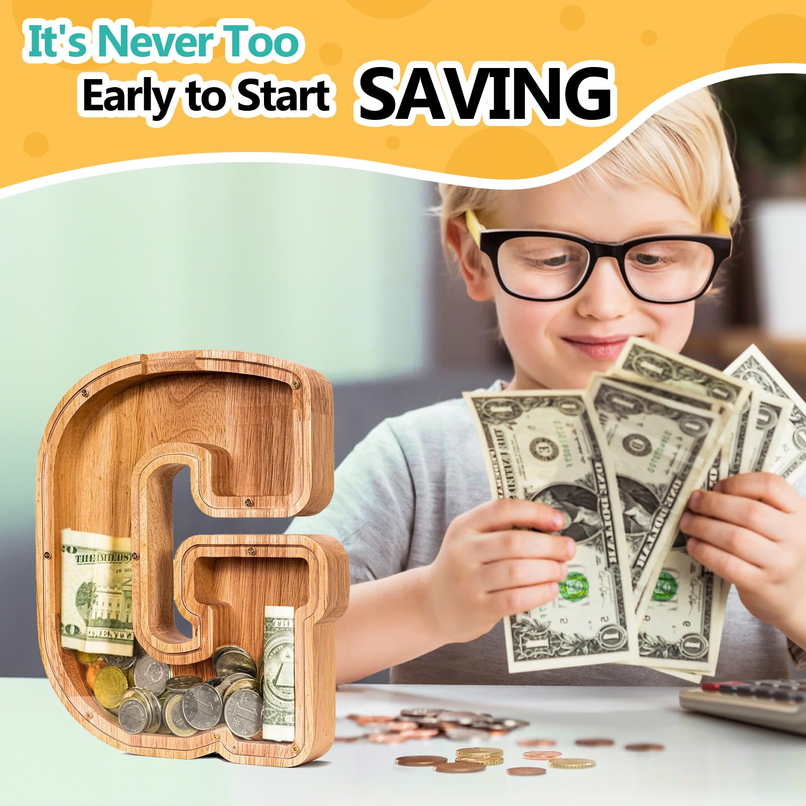 SummiDate Wooden Letter Piggy Bank| Piggy Bank for Boys Girls Toddler| Alphabet G Money Bank| Coin Bank Birthday Gift for Kids|Birthday Gift for Kids (G)
