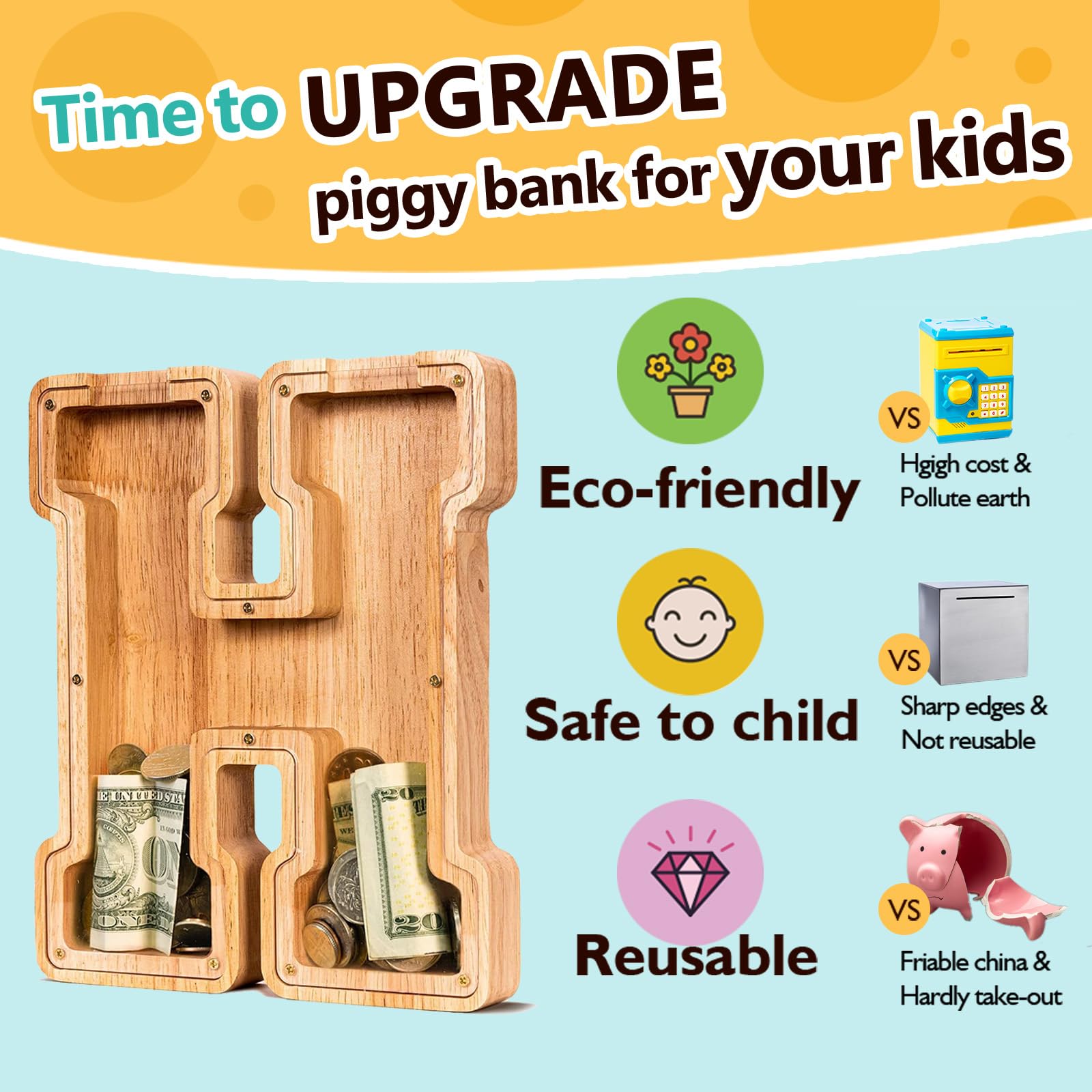 View compareSummiDate Wooden Letter Piggy Bank| Piggy Bank for Boys Girls Toddler| Alphabet H Money Bank| Coin Bank Birthday Gift for Kids|Birthday Gift for Kids (H)