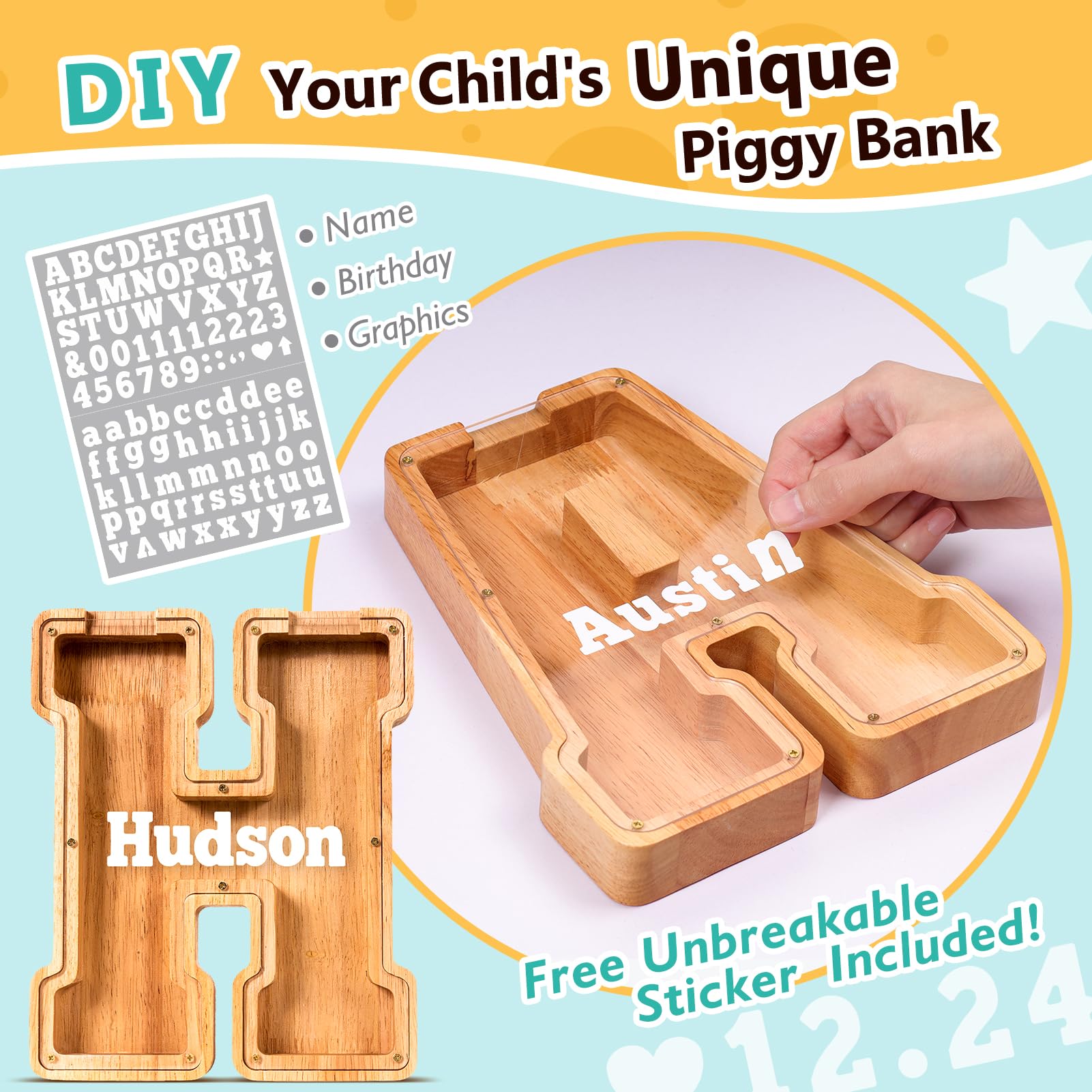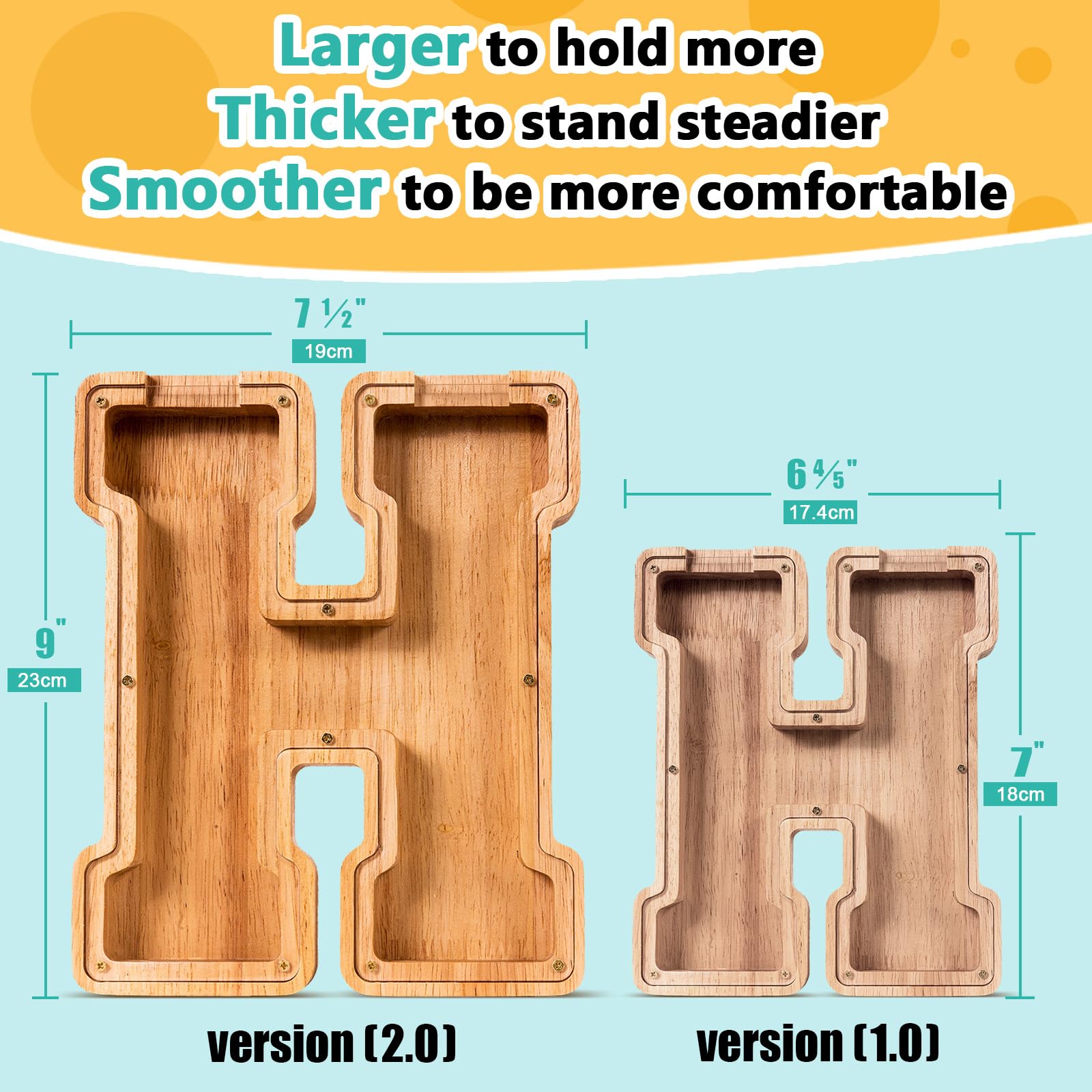SummiDate Wooden Letter Piggy Bank| Piggy Bank for Boys Girls Toddler| Alphabet H Money Bank| Coin Bank Birthday Gift for Kids|Birthday Gift for Kids (H)