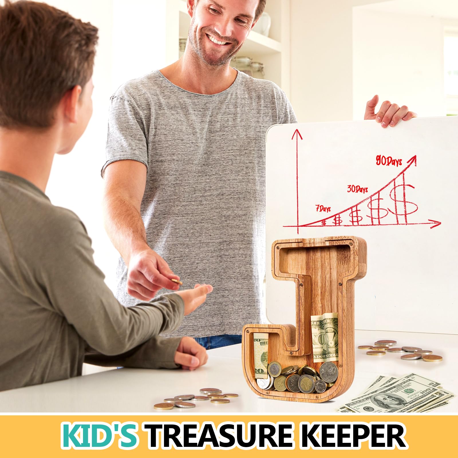View compareSummiDate Wooden Letter Piggy Bank| Piggy Bank for Boys Girls Toddler| Alphabet J Money Bank| Coin Bank Birthday Gift for Kids|Birthday Easter Gifts for Kids (J)
