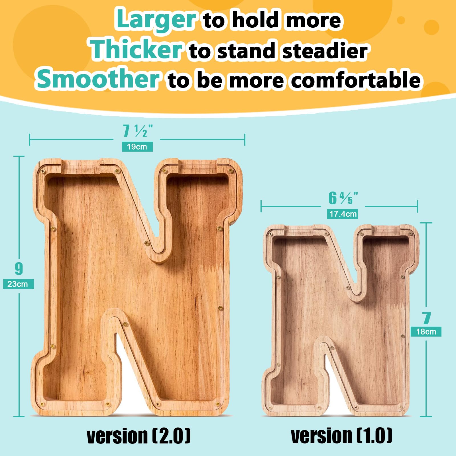 SummiDate Wooden Letter Piggy Bank| Piggy Bank for Boys Girls Toddler| Alphabet N Money Bank| Coin Bank Birthday Gift for Kids|Birthday Gift for Kids (N)