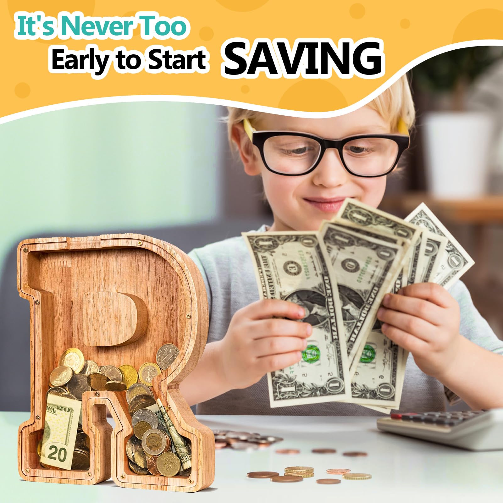 SummiDate Wooden Letter Piggy Bank| Piggy Bank for Boys Girls Toddler| Alphabet R Money Bank| Coin Bank Birthday Gift for Kids|Birthday Gift for Kids (R)