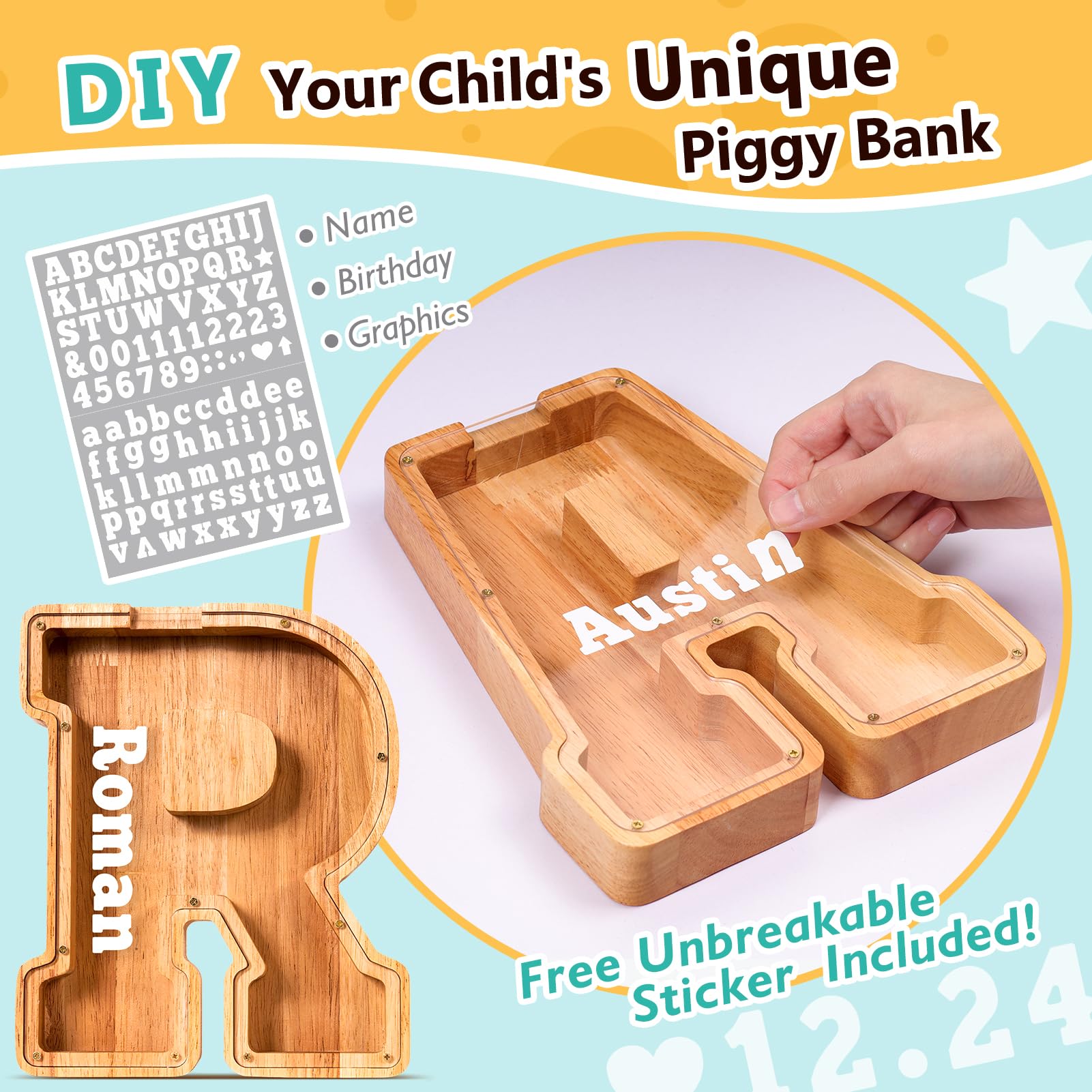 View compareSummiDate Wooden Letter Piggy Bank| Piggy Bank for Boys Girls Toddler| Alphabet R Money Bank| Coin Bank Birthday Gift for Kids|Birthday Gift for Kids (R)