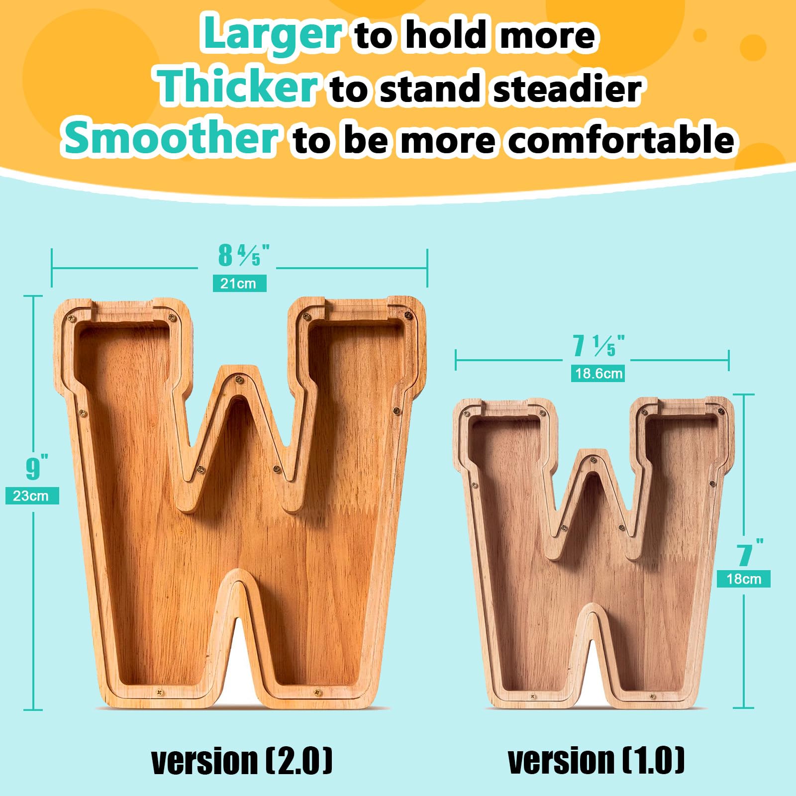 SummiDate Wooden Letter Piggy Bank| Piggy Bank for Boys Girls Toddler| Alphabet W Money Bank| Coin Bank Birthday Gift for Kids|Birthday Gift for Kids (W)
