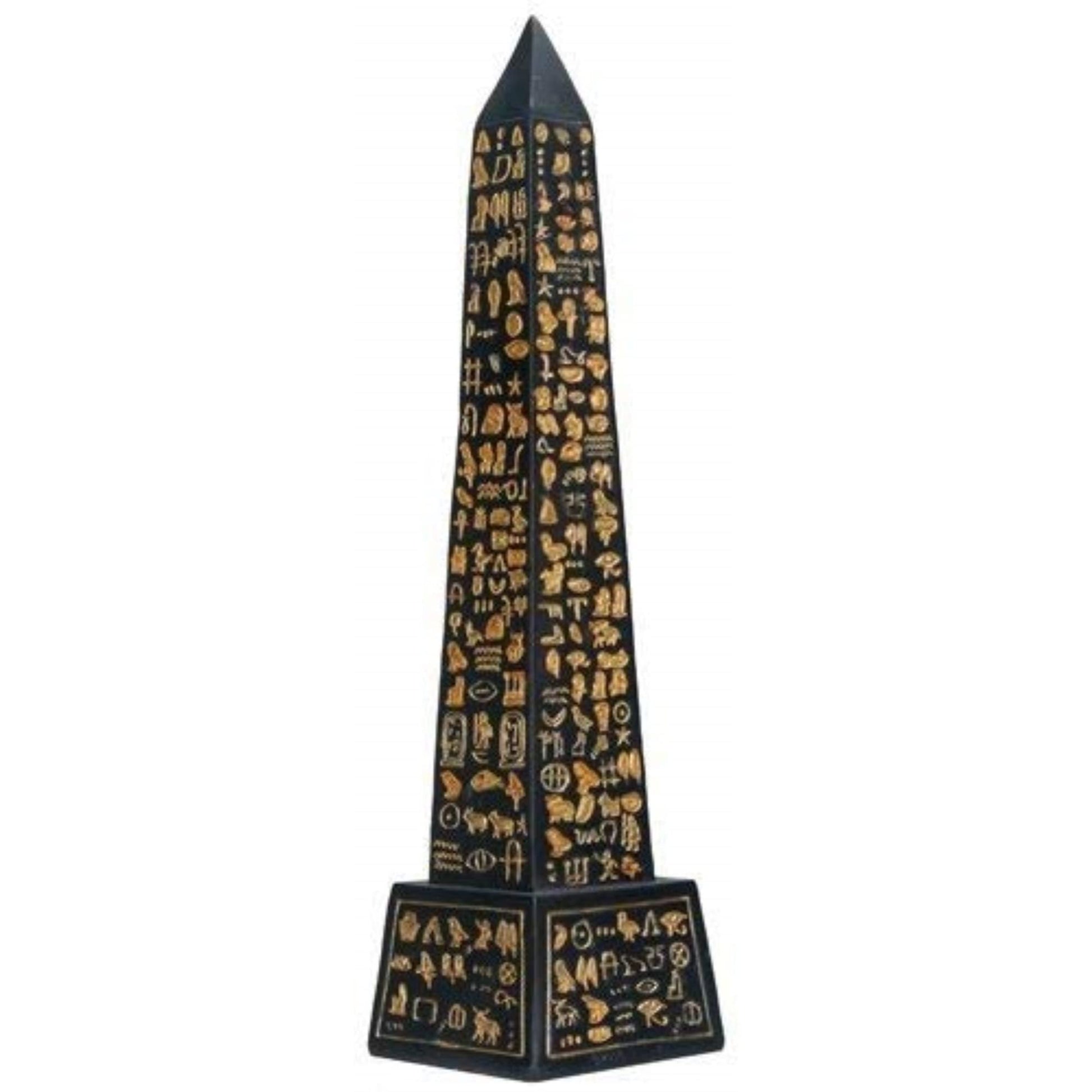 - Q: What makes the SUMMIT COLLECTION Black Egyptian Obelisk a unique collectible? A: This figurine features intricate gold hieroglyphs and is a YTC Summit original design, making it a distinctive addition to any collection of decorative art.