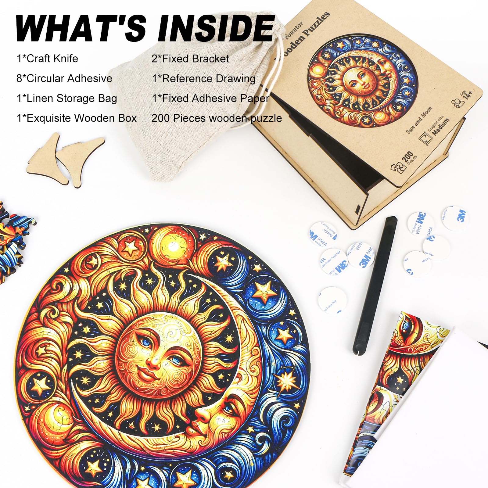 Sun and Moon Wooden Puzzles for mature-themeds 200pcs Wooden Jigsaw Puzzles for mature-themeds Sun and Moon Unique Shaped Jigsaw Puzzles Creative Gift for Friend Family Game Medium Size 10'' x 10''
