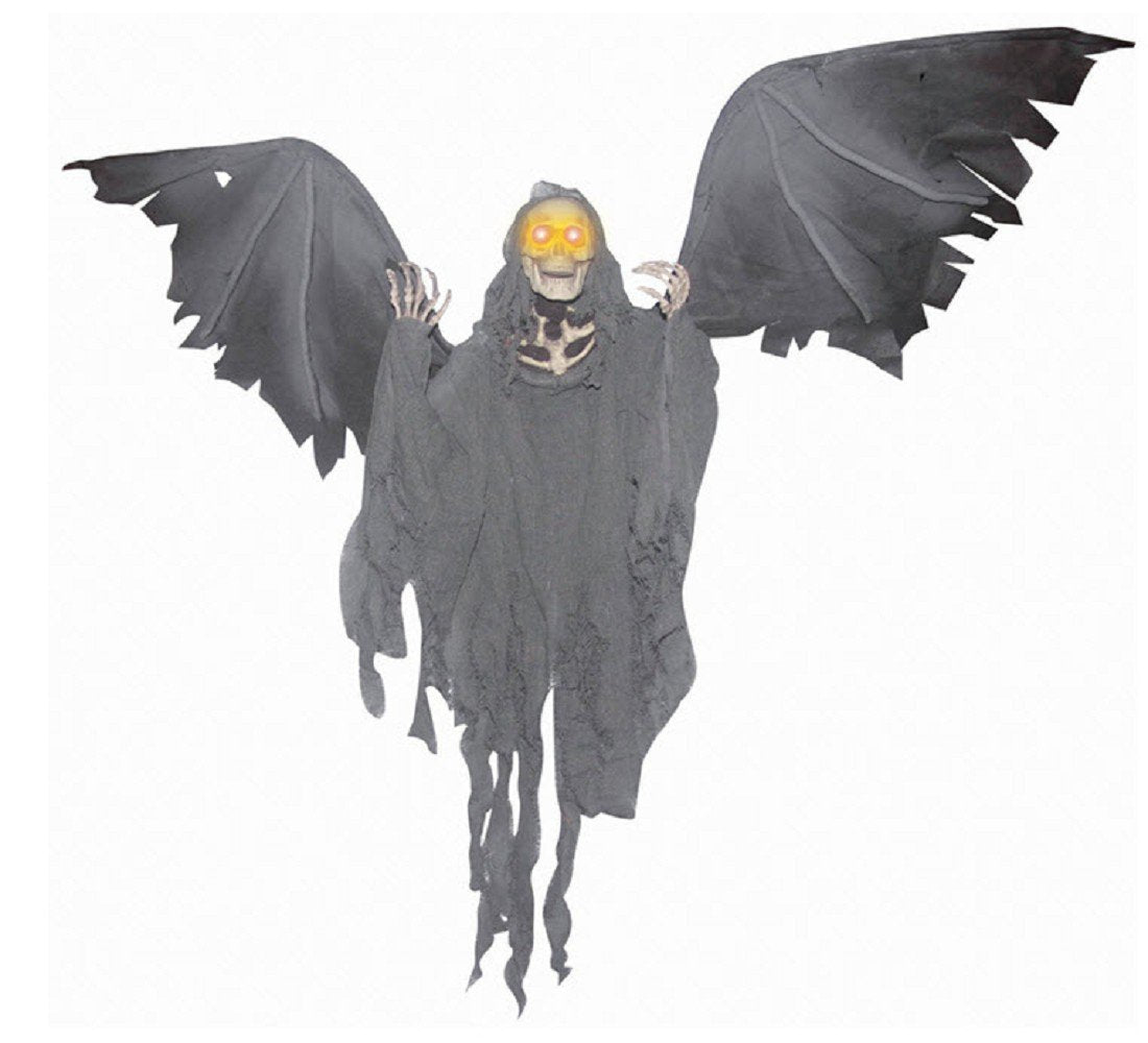 - Q: What are the dimensions of the Sunstar Industries Animated Flying Reaper? A: The Sunstar Industries Animated Flying Reaper stands 38 inches tall with a wingspan of 52 inches and a depth of 5 inches.