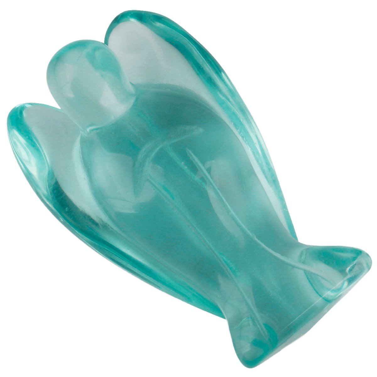Sunyik Blue Crystal Galss Carved Guardian Angel Natural Crystal Pocket Statues Figurines 1.5''