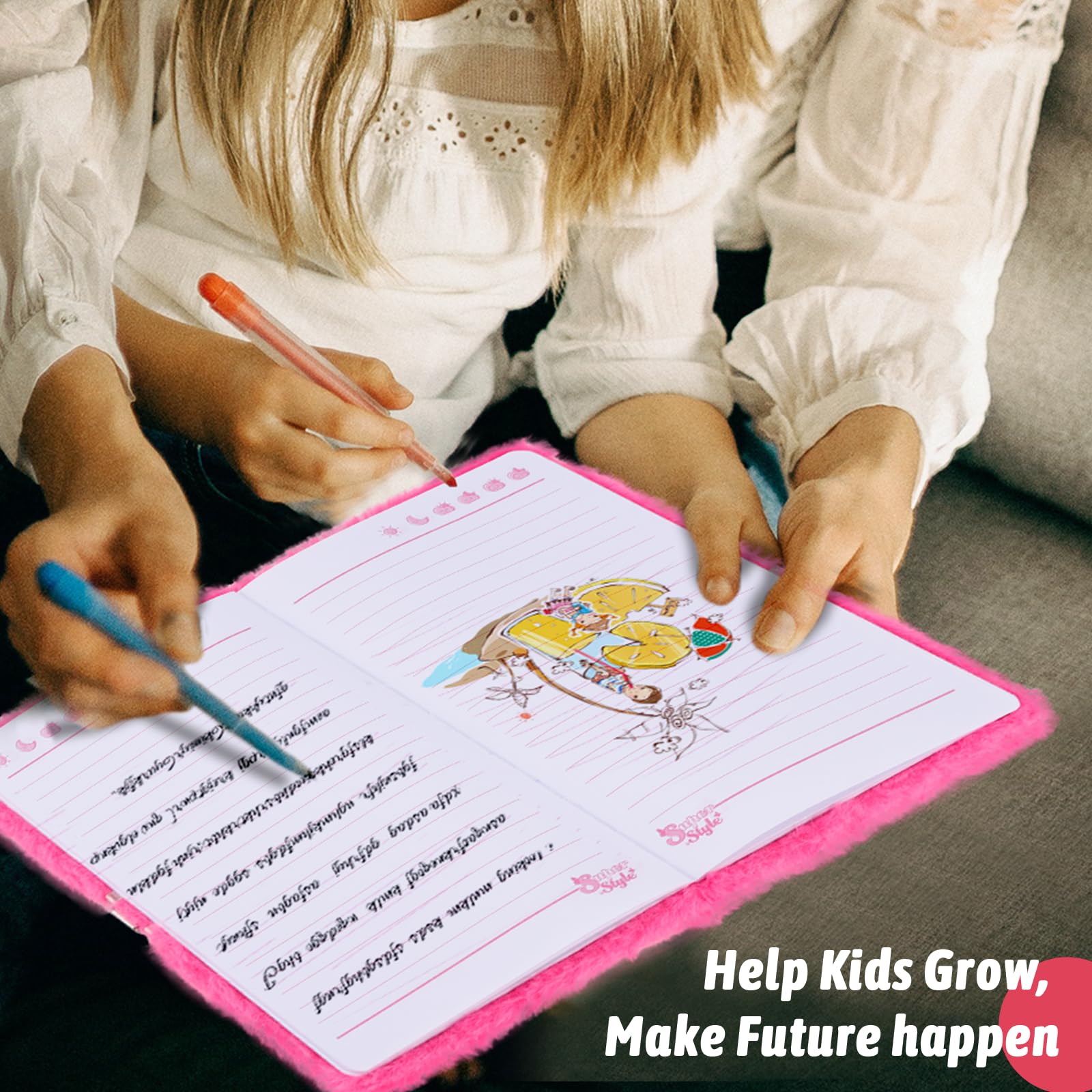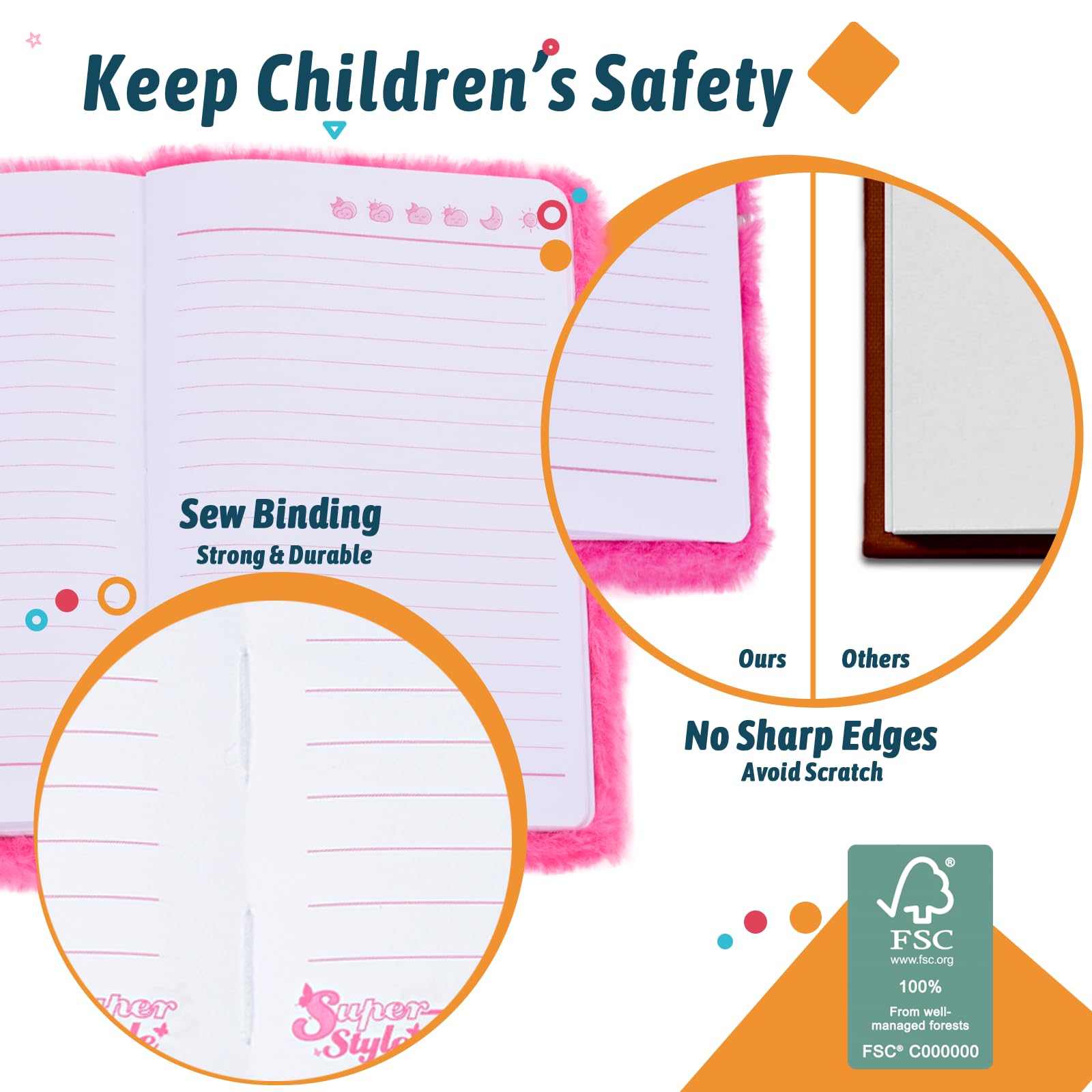 - Q: What features make this diary special for kids? A: This diary features a soft plush cover, 64 lined pages for writing and drawing, a safety lock with a key for privacy, and a colorful design that kids will love.