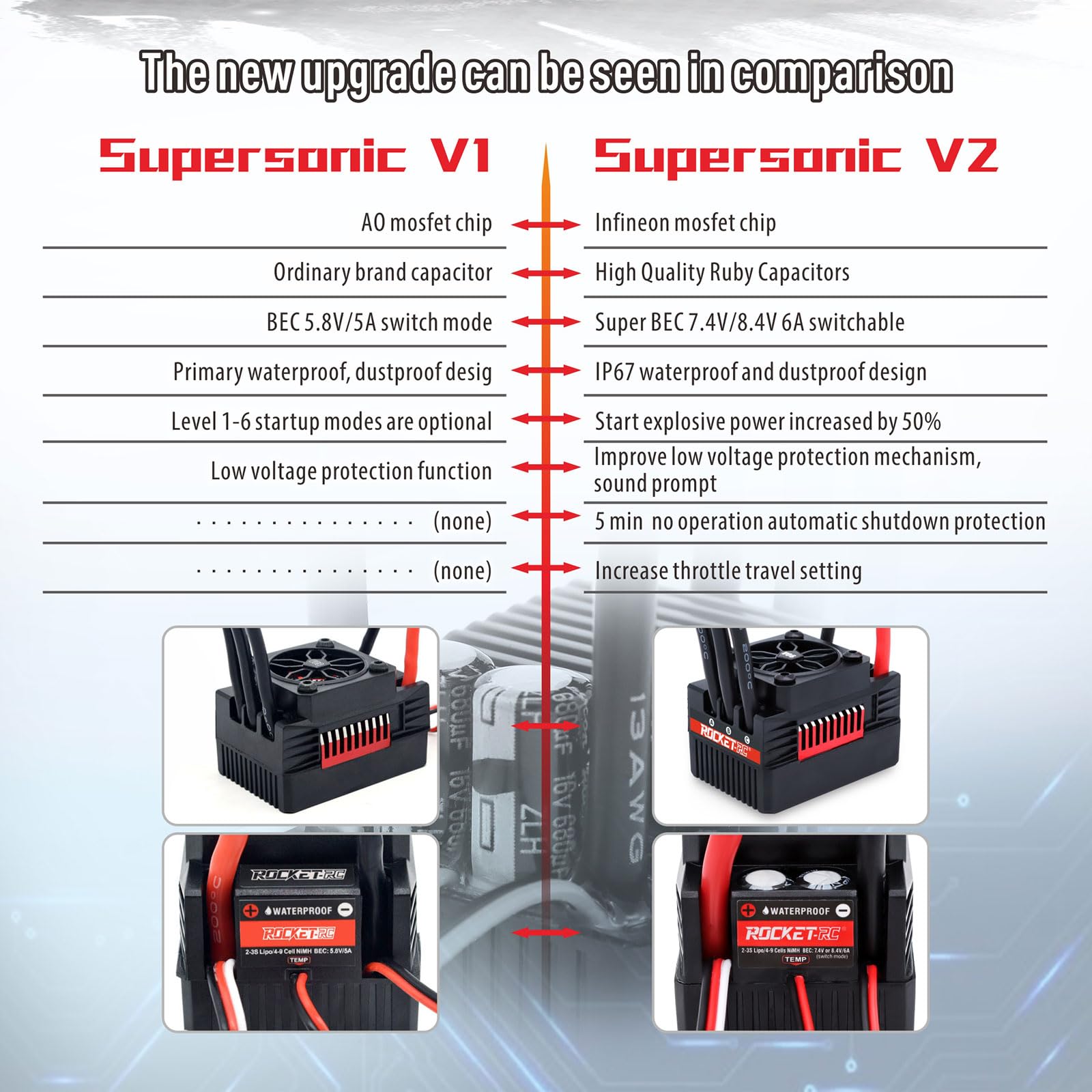 View compareSurpass Hobby Rocket Rc Waterproof Supersonic Brushless Esc 60A With Plug For 1/10 Rc Car (60A)