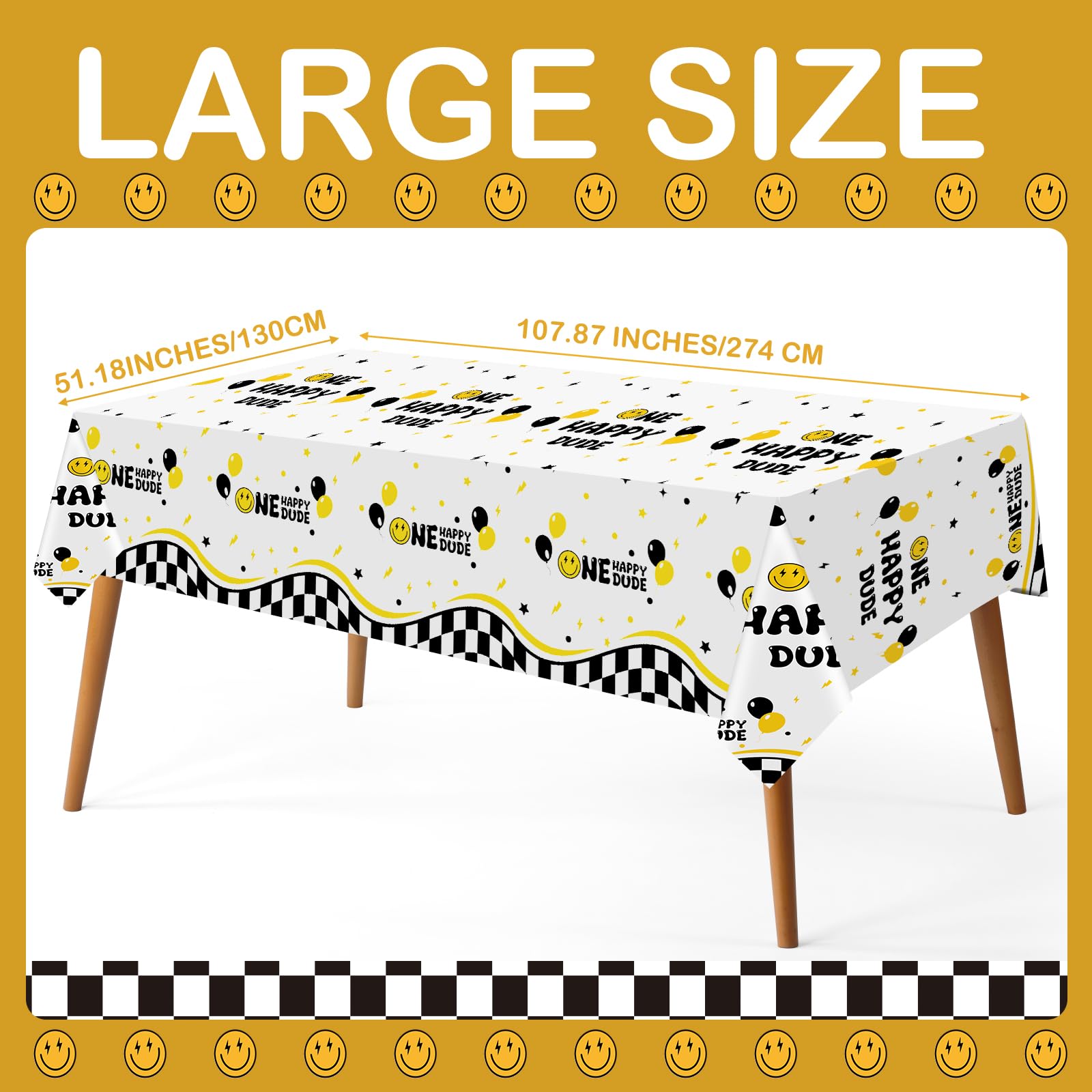 Suttmin 3 Pcs One Happy Dude Table Cloth One Happy Dude Birthday Decorations Plastic Smile Face Party Tablecloths 1st Birthday T