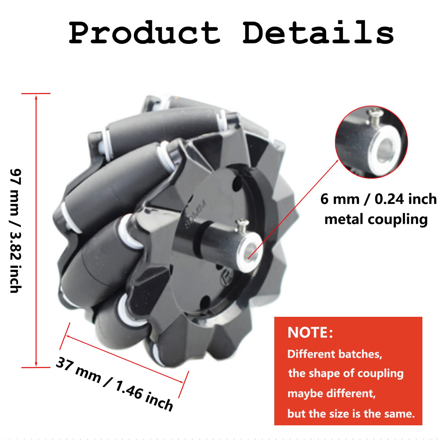 View compareSwaytail Premium 97Mm Mecanum Wheel For Agv Robot Car Chassis, Omni Directional Tire With 4Pcs Metal 6Mm Coupling Motor Connector For Arduino Raspberry Pi Microbit Diy Rc Toy Part Steam Maker Remote