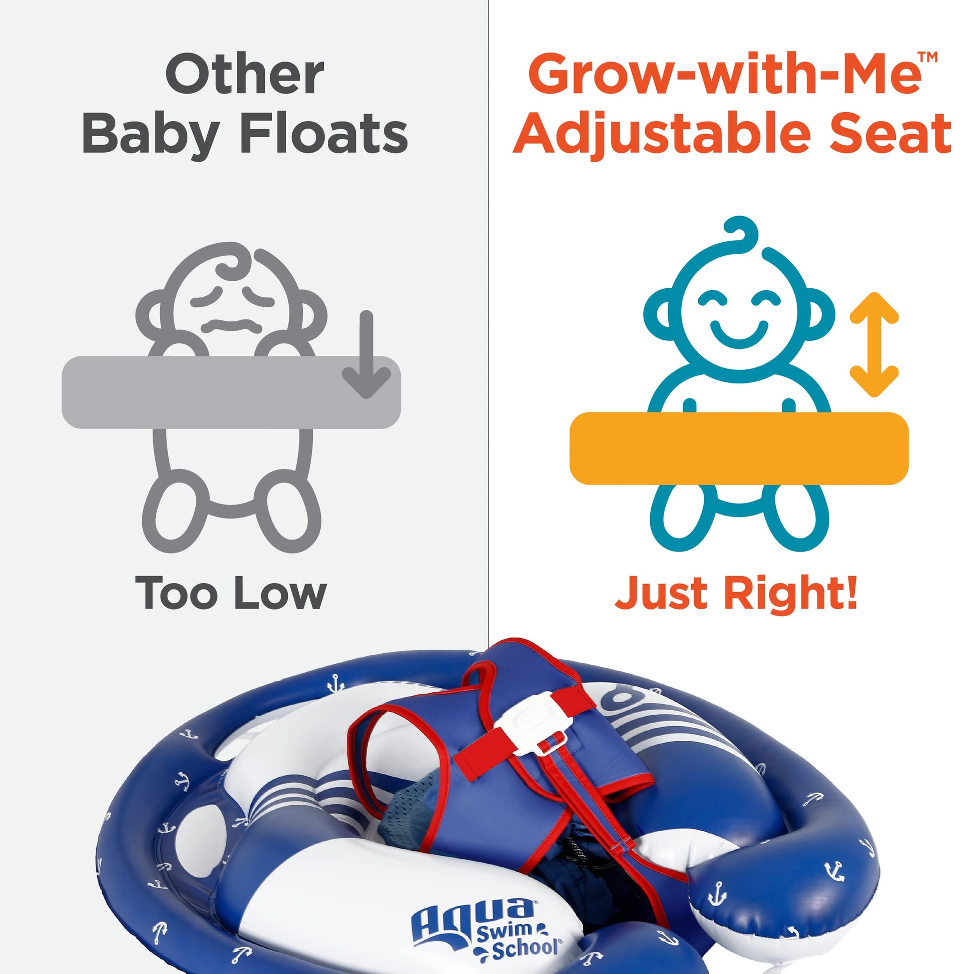 - Q: How does the adjustable safety seat work in this baby float? A: The float features a multi-position adjustable seat that allows you to position your baby for active play or a soothing seated position for floating, ensuring comfort and safety during use.