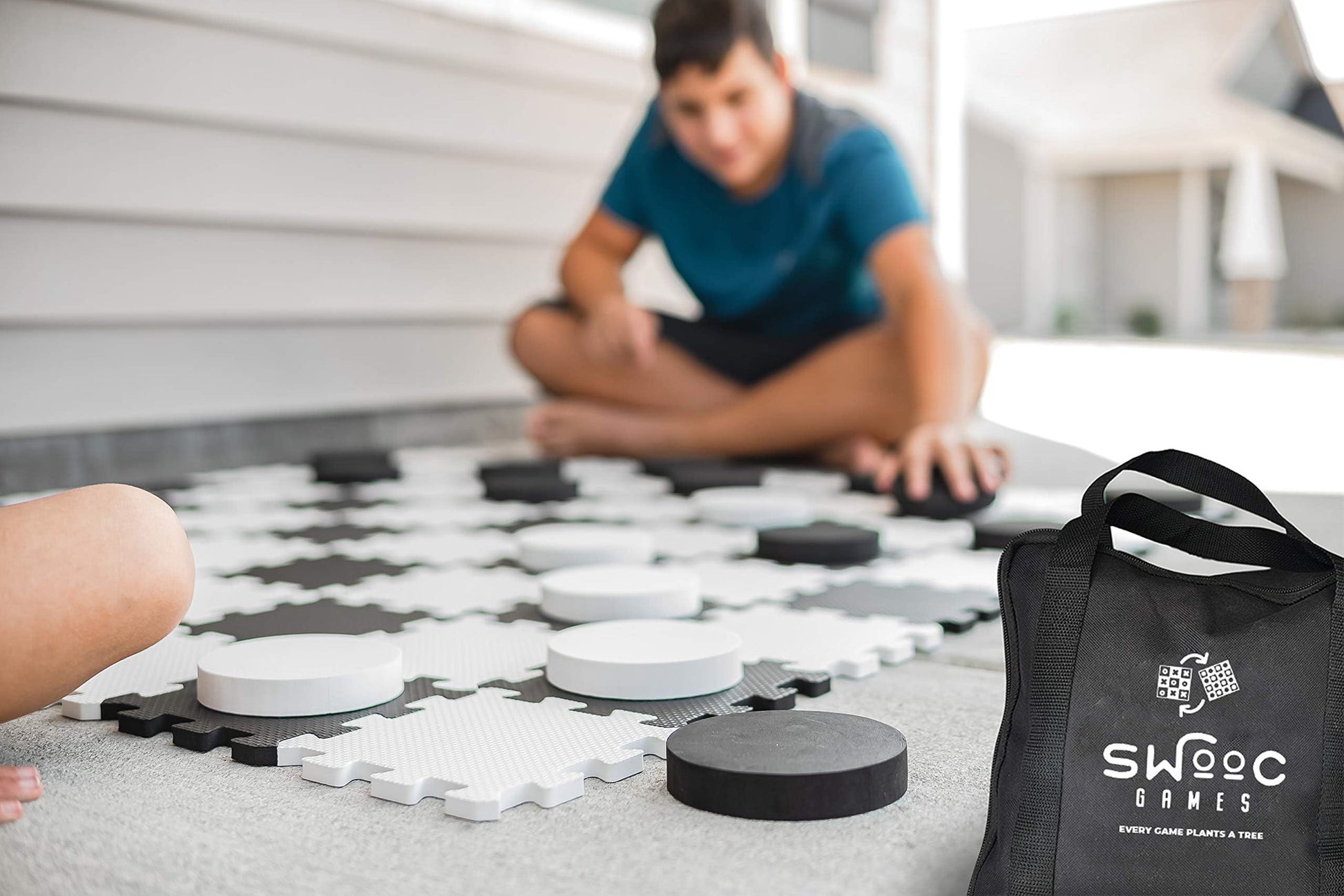 View compareSwooc Games - 2-In-1 Reversible Giant Checkers & Tic Tac Toe Game ( 4Ft X 4Ft ) - 100% High Density Eva Foam Mat & Pieces - Extr