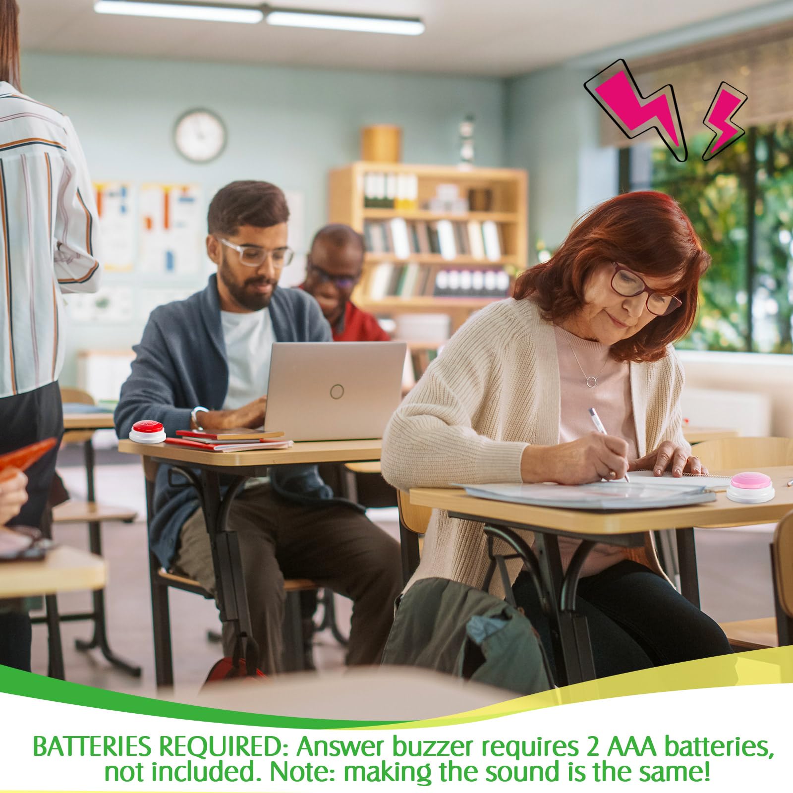 - Q: How do you operate the animal answer buzzers? A: Operating the animal answer buzzers is simple. Each buzzer requires 2 AAA batteries (not included). Once you insert the batteries, press the buzzer to activate the corresponding animal sound, making it a fun and interactive experience for users.